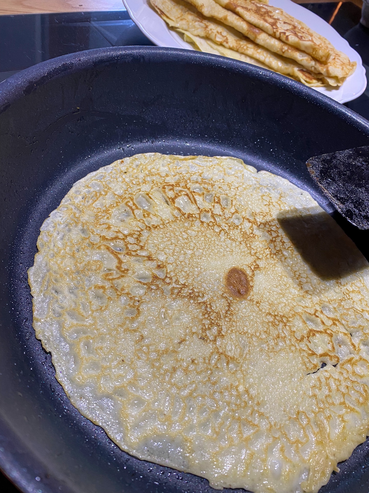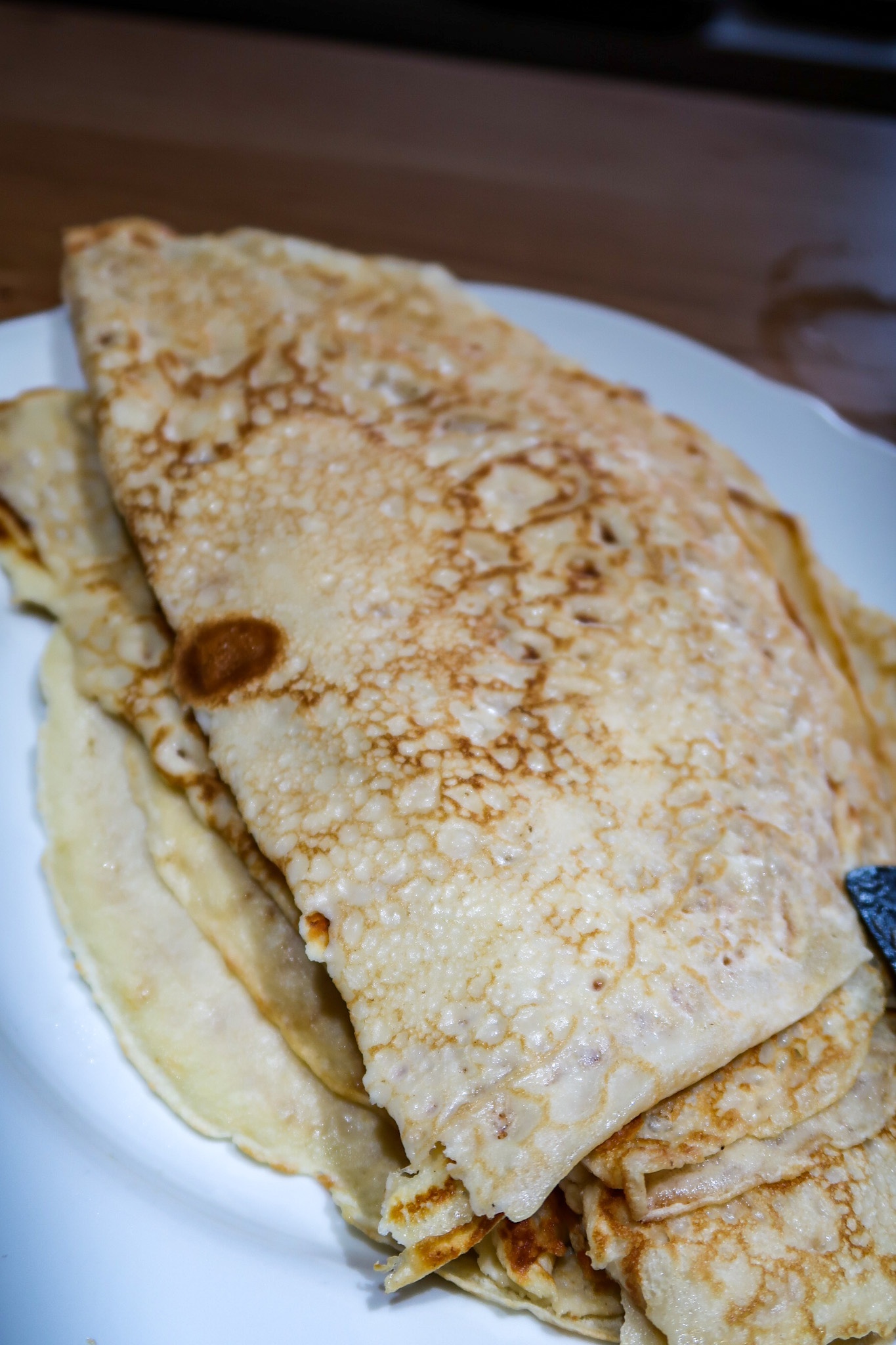 4) Stek pannkakorna i smör. Detta blir ca 12 stekta pannkakor.