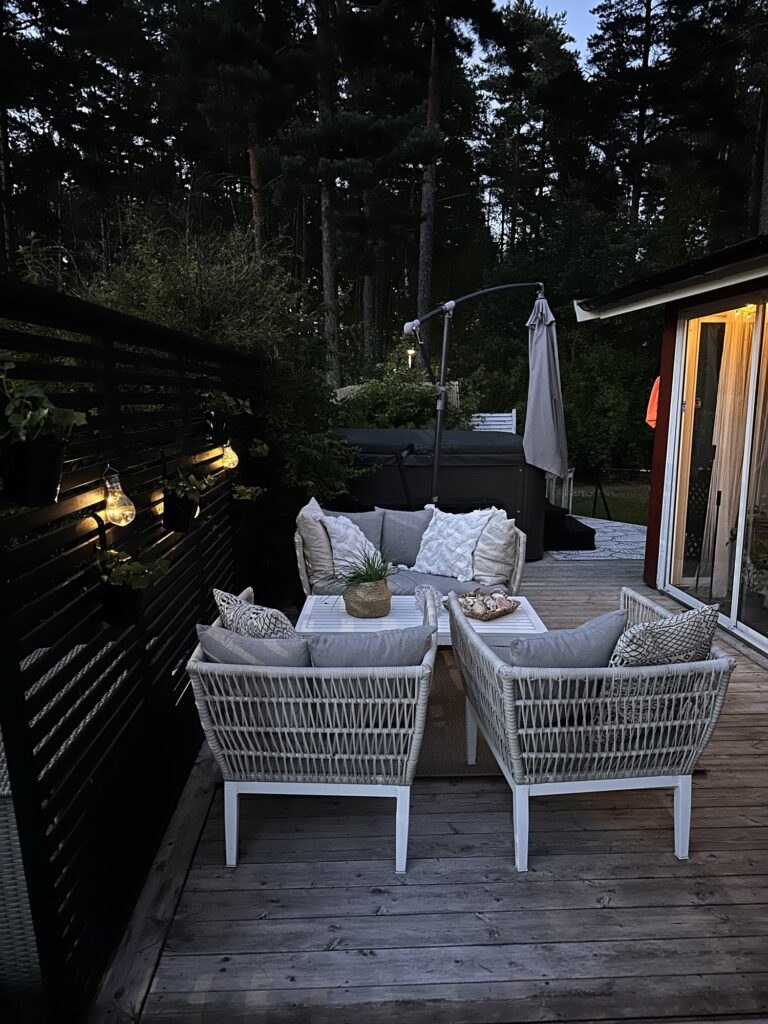 Nu har vi haft ett par riktigt härliga sommarkvällar här hos oss. Vi har sett till att sitta ute och njuta allt vad vi kunnat om kvällarna. Det är verkligen höjden av mys!