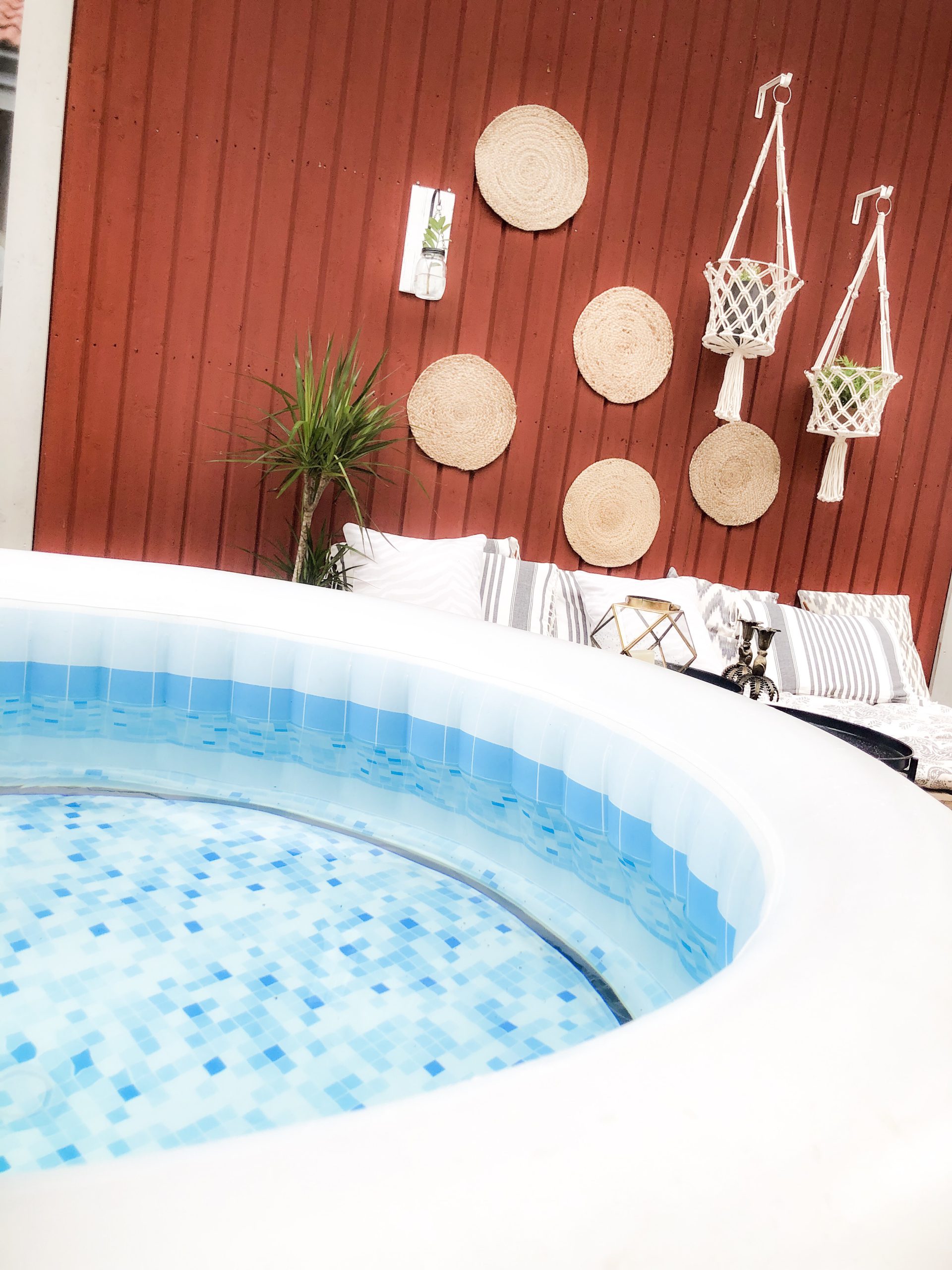 Jag startade min morgon 06.30 i den här. 40 grader stod mätaren på och jag klev ned i ett riktigt hett bad. Fifasen som jag njuter när det känns som huden krullar sig av värmen. Man liksom ryser in i benen för att det är så varmt. Min pappa och syster är likadana. Det ska vara hett som fan, annars får det vara. Så dealen är att jag eldar på den här poolen till morgonen, tar mitt heta bad och sen sänker jag den så alla andra i familjen kan bada.