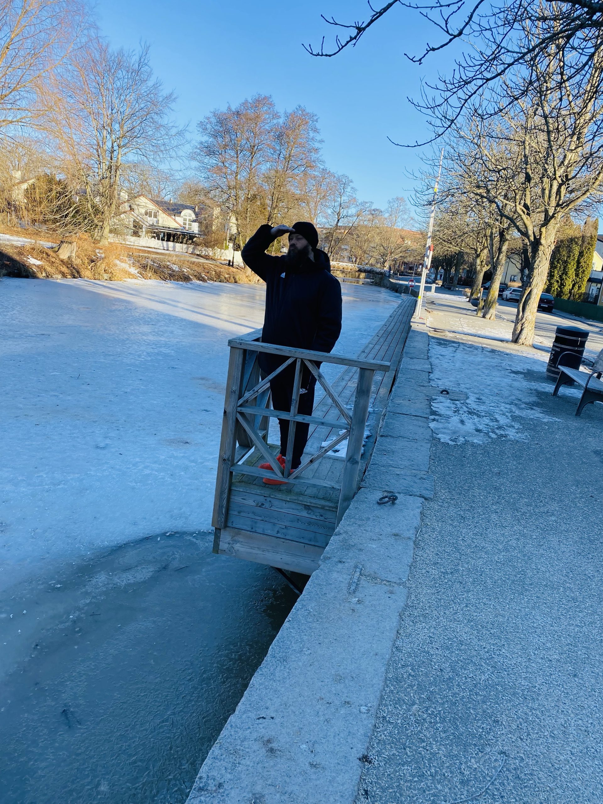 I morse innan Tonys padelmatch så tog vi en promenad. Var ned till hamnen och gick en sväng. Så fint när solen skiner. Tony höll utkik. 😅