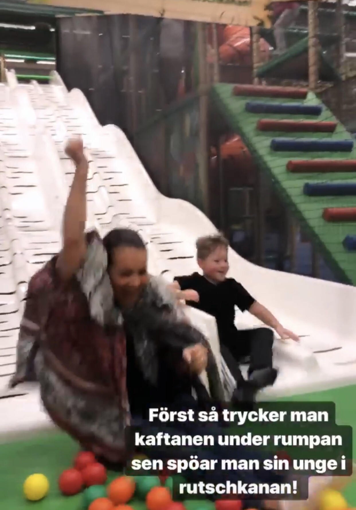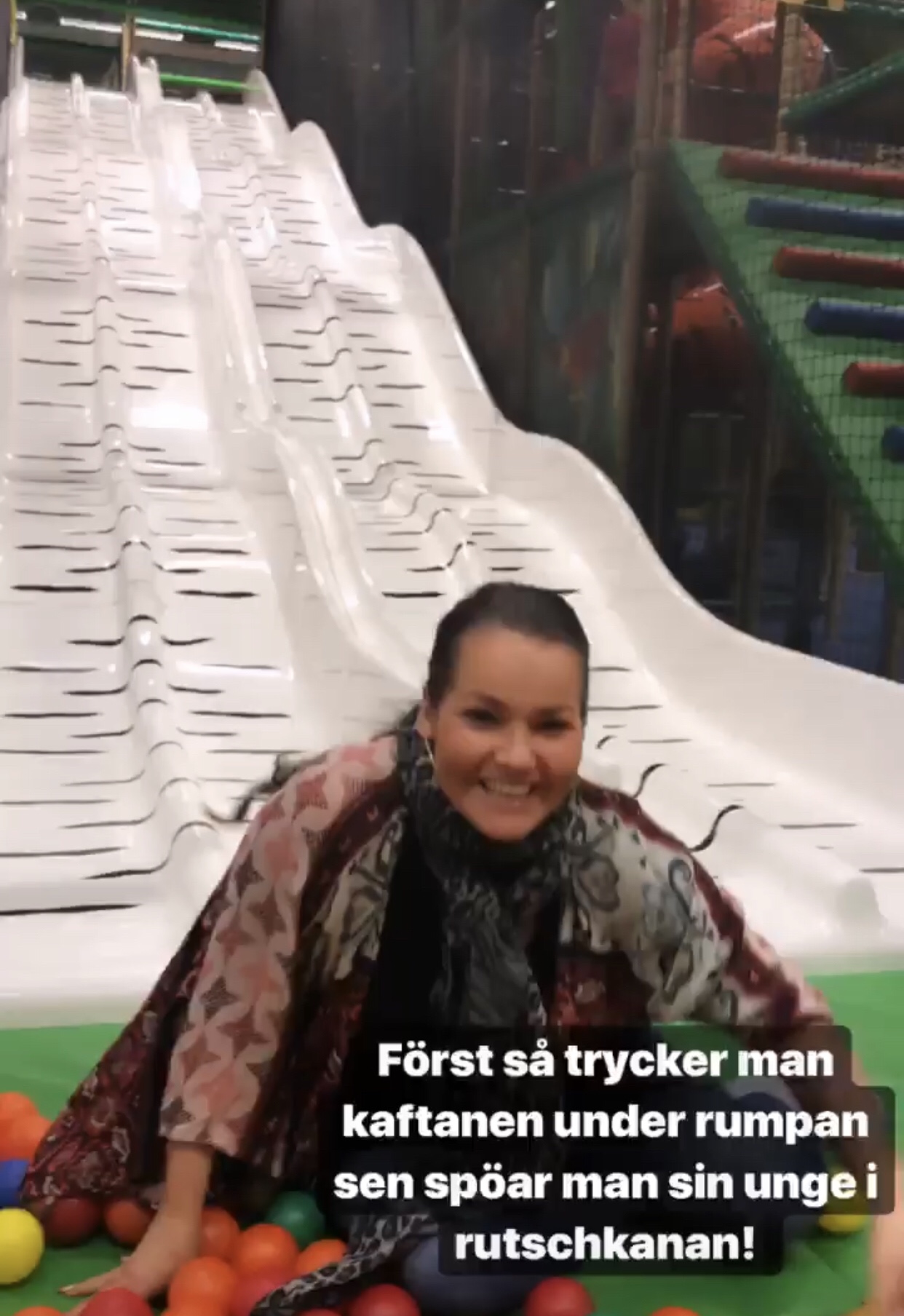 Skaaaaapligt glad morsa när man fick spöa sin unge i rutschkanan. Mitt tips är att trycka in koftan under rumpan så man får en jäkla fart.