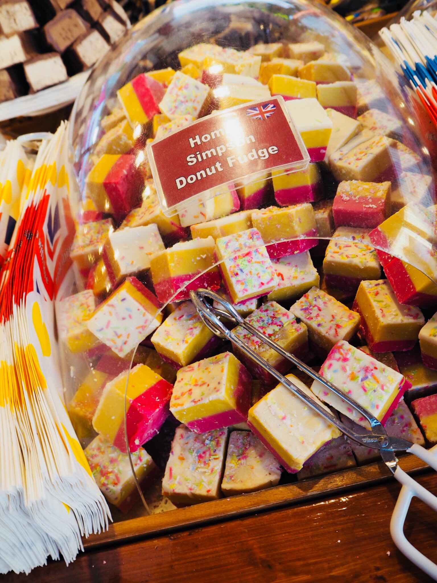 Det enda vi köpte var dessa galet stora fudge som fanns i hur många sorter som helst. De största bitarna var som disksvampar liksom.