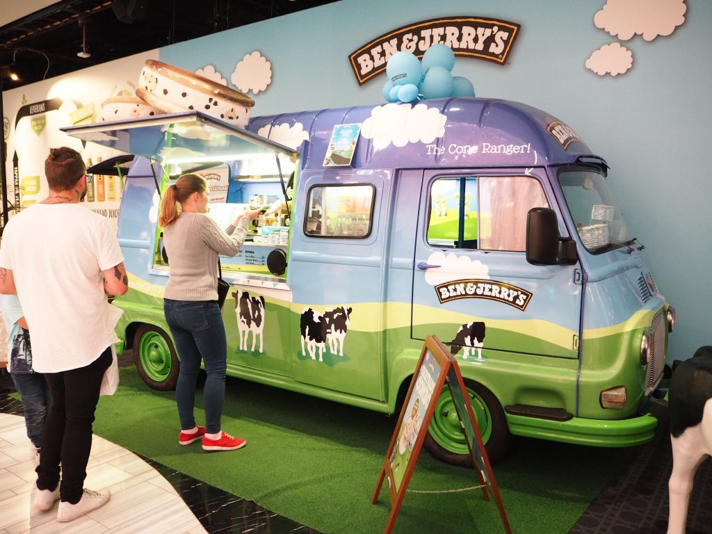 En liten efterrätt vid Ben & Jerrys lilla söta buss. Ge mig en sån buss. Skulle fylla den med stora kanelbullar och stora baljor med kaffe. Sen brassa runt på stan och kränga. Haha….
