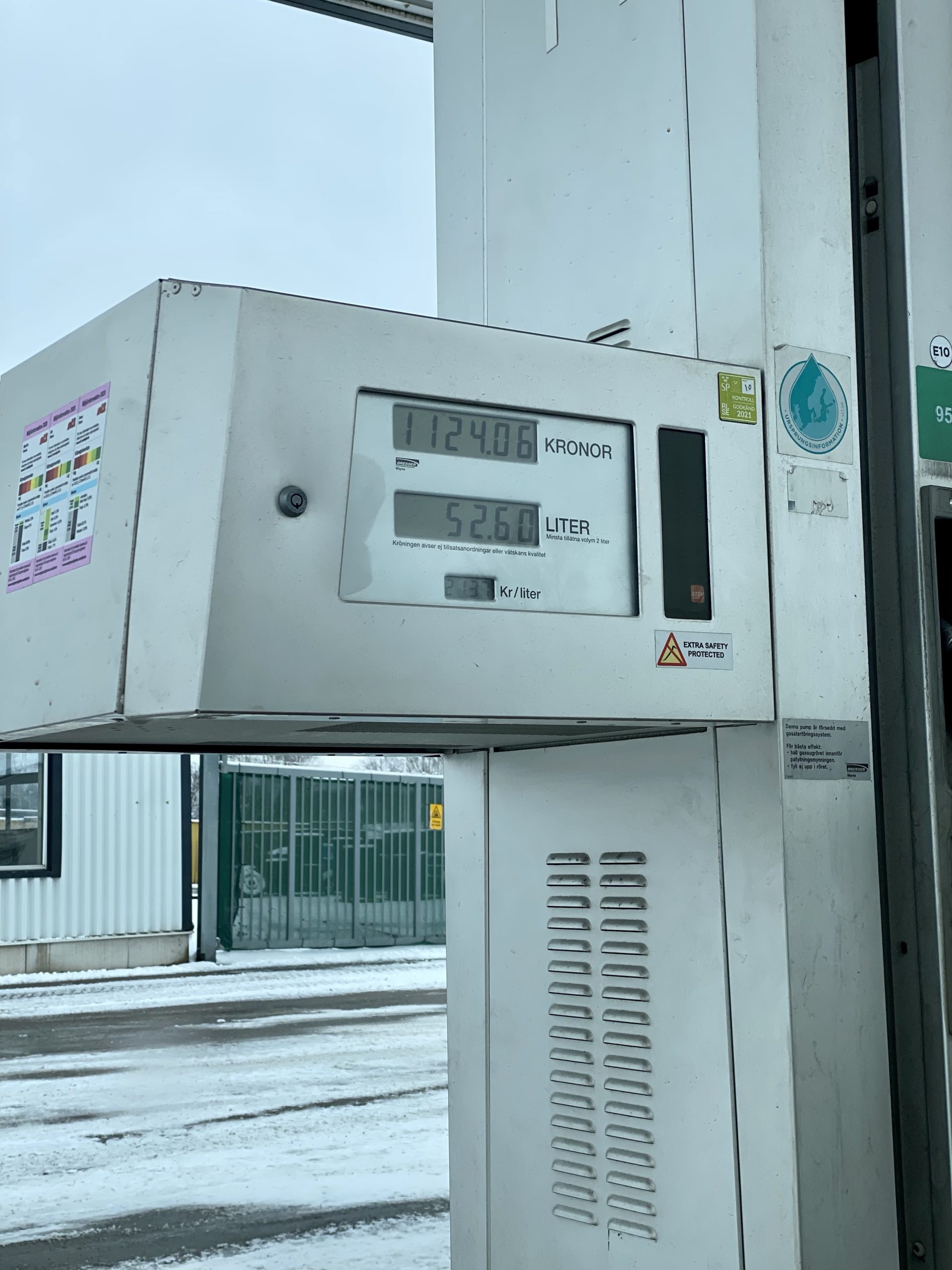 Sen det roligaste av allt! Tanka upp bilen. Haha…. Ja jäklar så dyrt det är nu. Det är runt 12-1300 kr varje gång man tankar fullt.