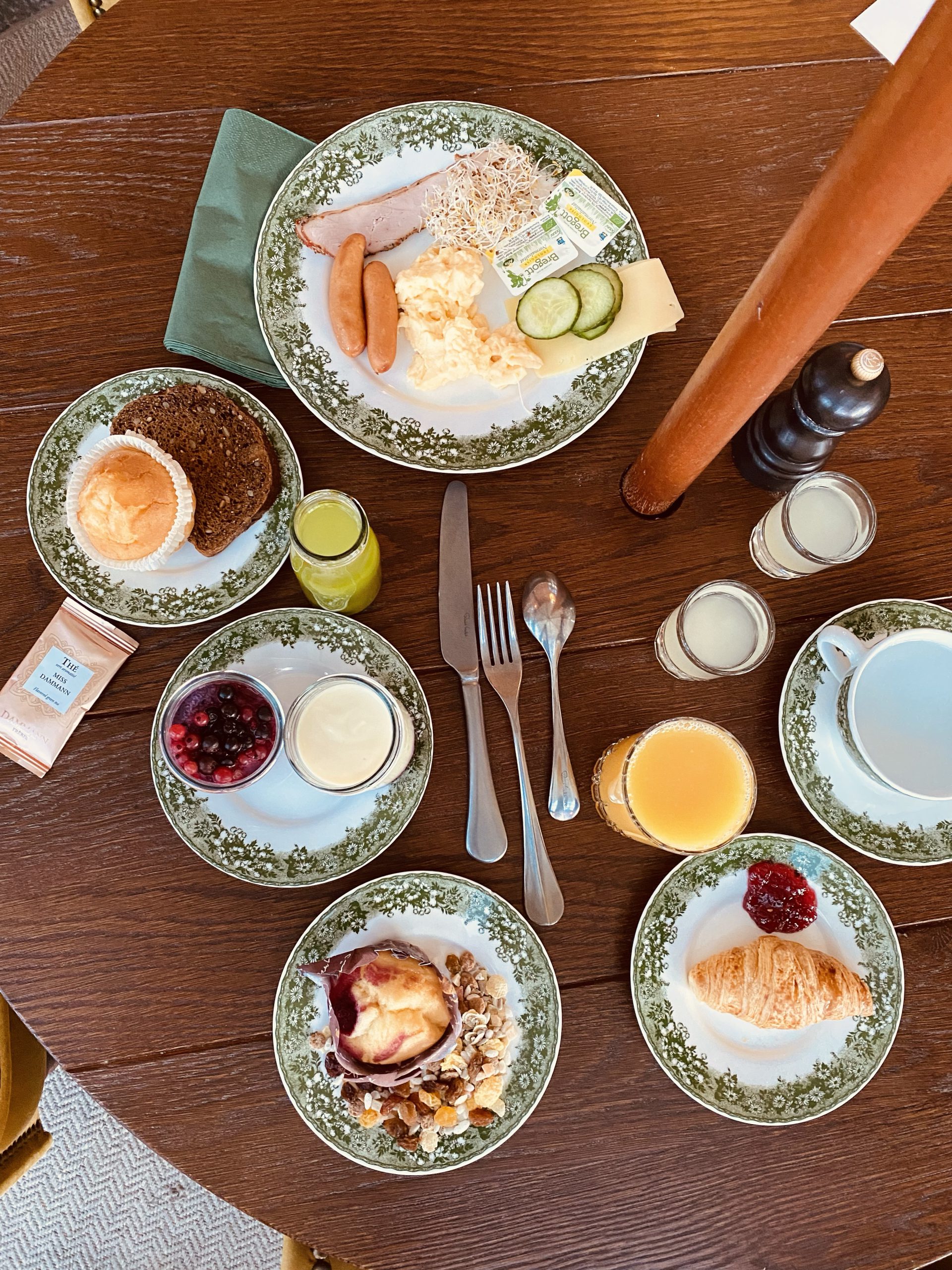 Vi hade tidig frukost bokad så när solen var på väg upp så gick vi in i den underbara inneträdgården och åt vår frukost.