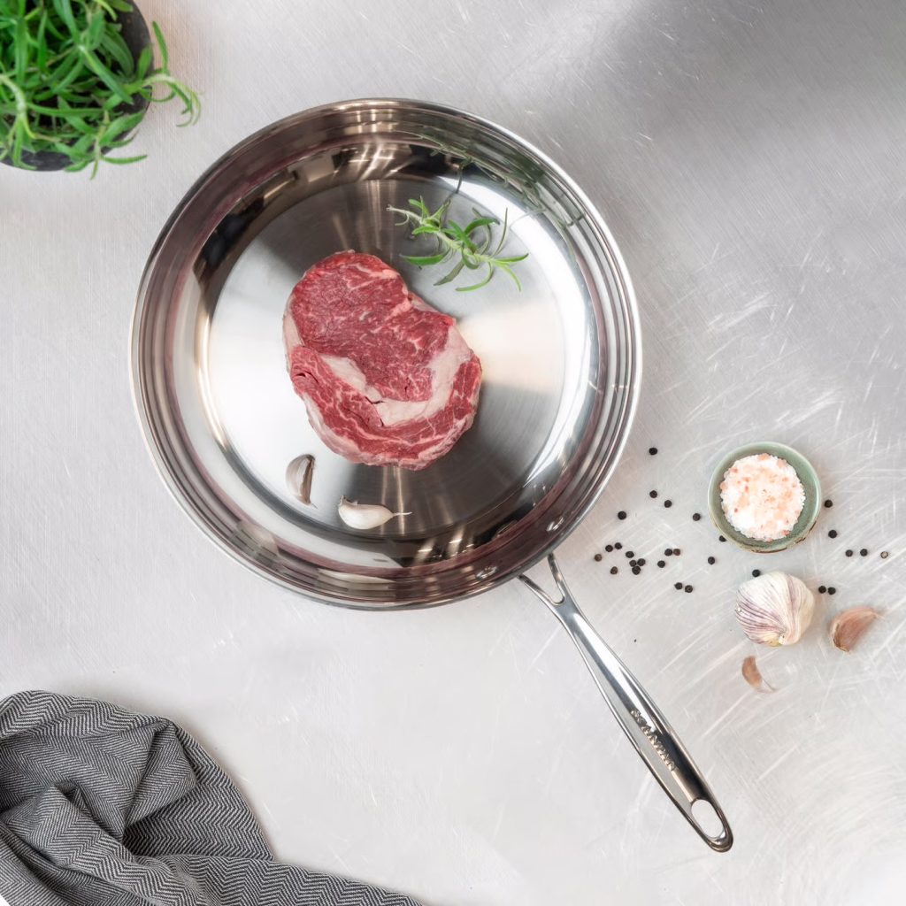 Jag har en favorit bland de rostfria pannorna och det är Scanpans som alltid ger jättefint resultat på kött. Denna kan du också ställa in i ugnen.