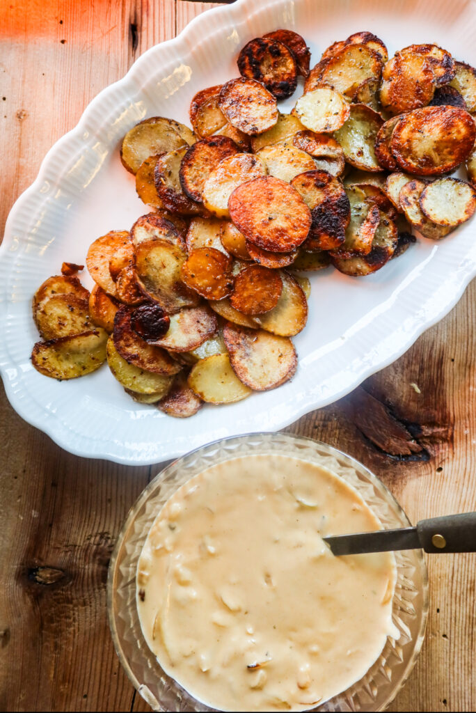 Jag stekte både löken och potatisen på mitt stekbord (<klicka för produkt) – jag har den stora på 45 cm. Finns även mindre. Älskar det där stekbordet. Får plats med så mycket på det, perfekt att använda både på induktionshäll, vanlig häll, eld eller grill.