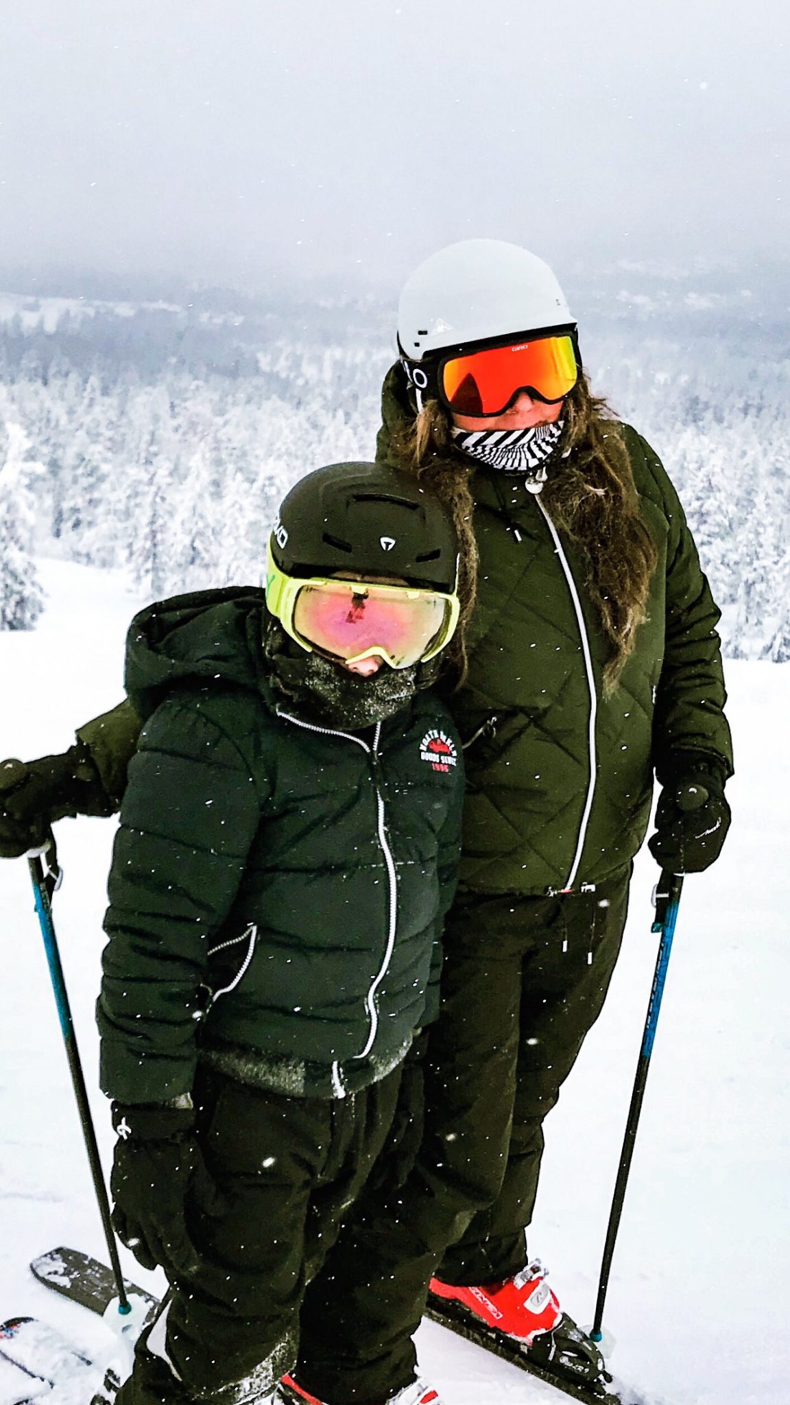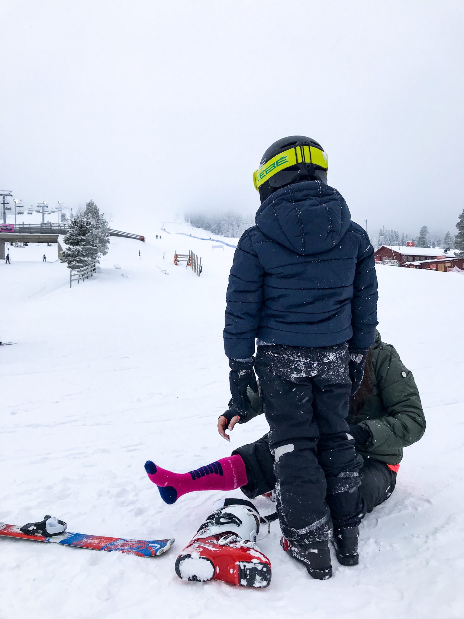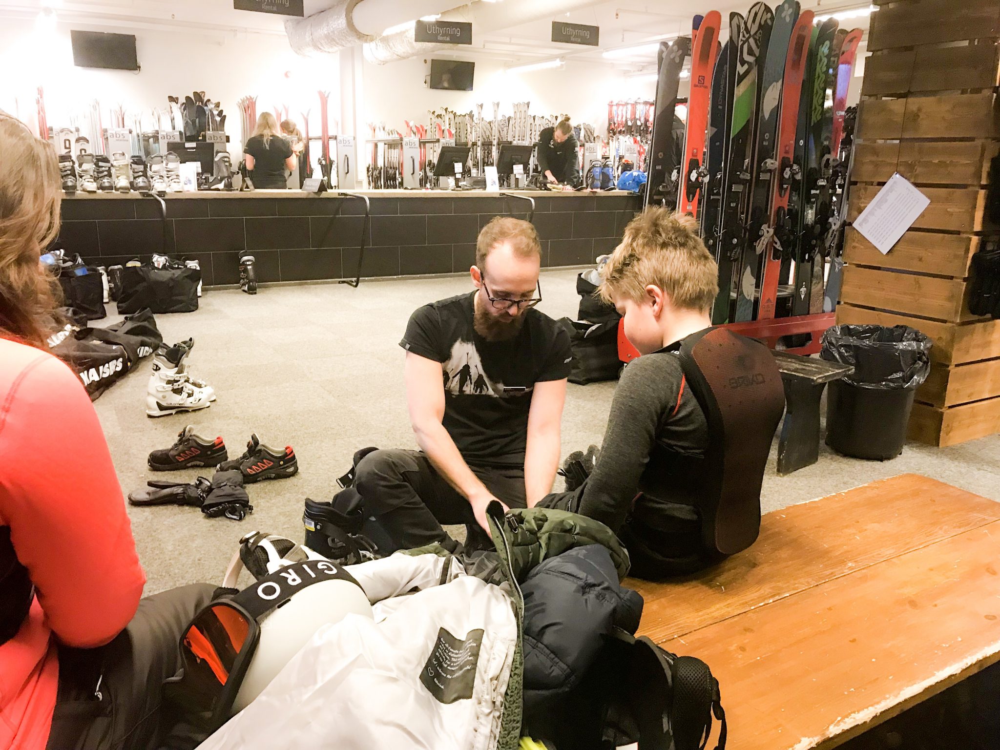 Det blev till att gå till sportboden och hyra ett par pjäxor åt honom. Han var euforisk efteråt och kunde inte förstå att pjäxor kunde vara så sköna. Sötisen!