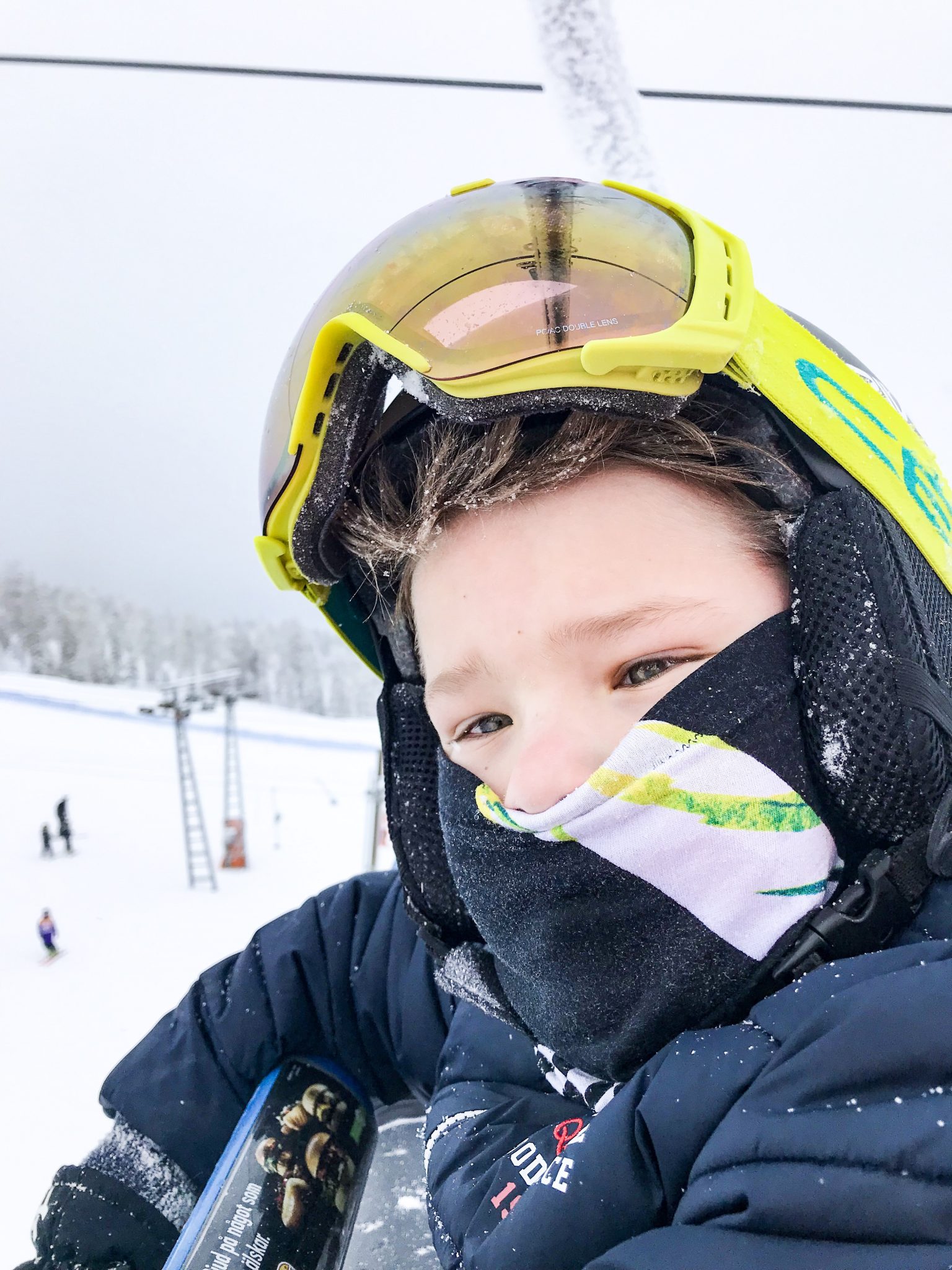 Vår tappra lilla kille. Han klagar verkligen aldrig. Han åker med och ser det mesta som roligt även om det igår knappt gick att se framför sig när vi åkte ned. Han har blivit så duktig på att åka också.