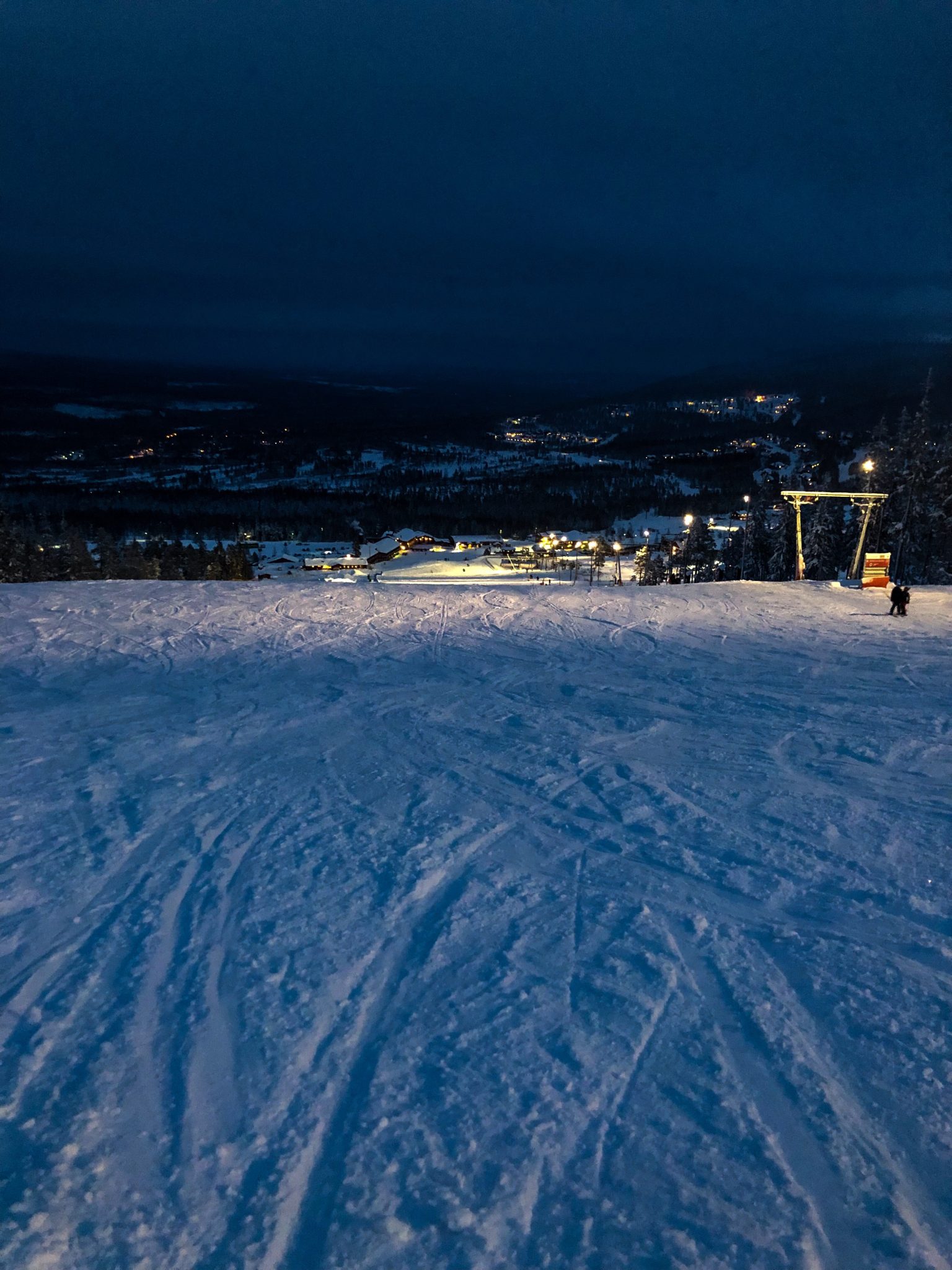 Var väl kanske inte världens härligaste att ta på sig pjäxor och hela faderullan och ge sig ut i kylan för att ta sig hem. Men ack så vackert! Med ficklampa och lite halvkasst mörkerseende hittade vi till slut till vår stuga.