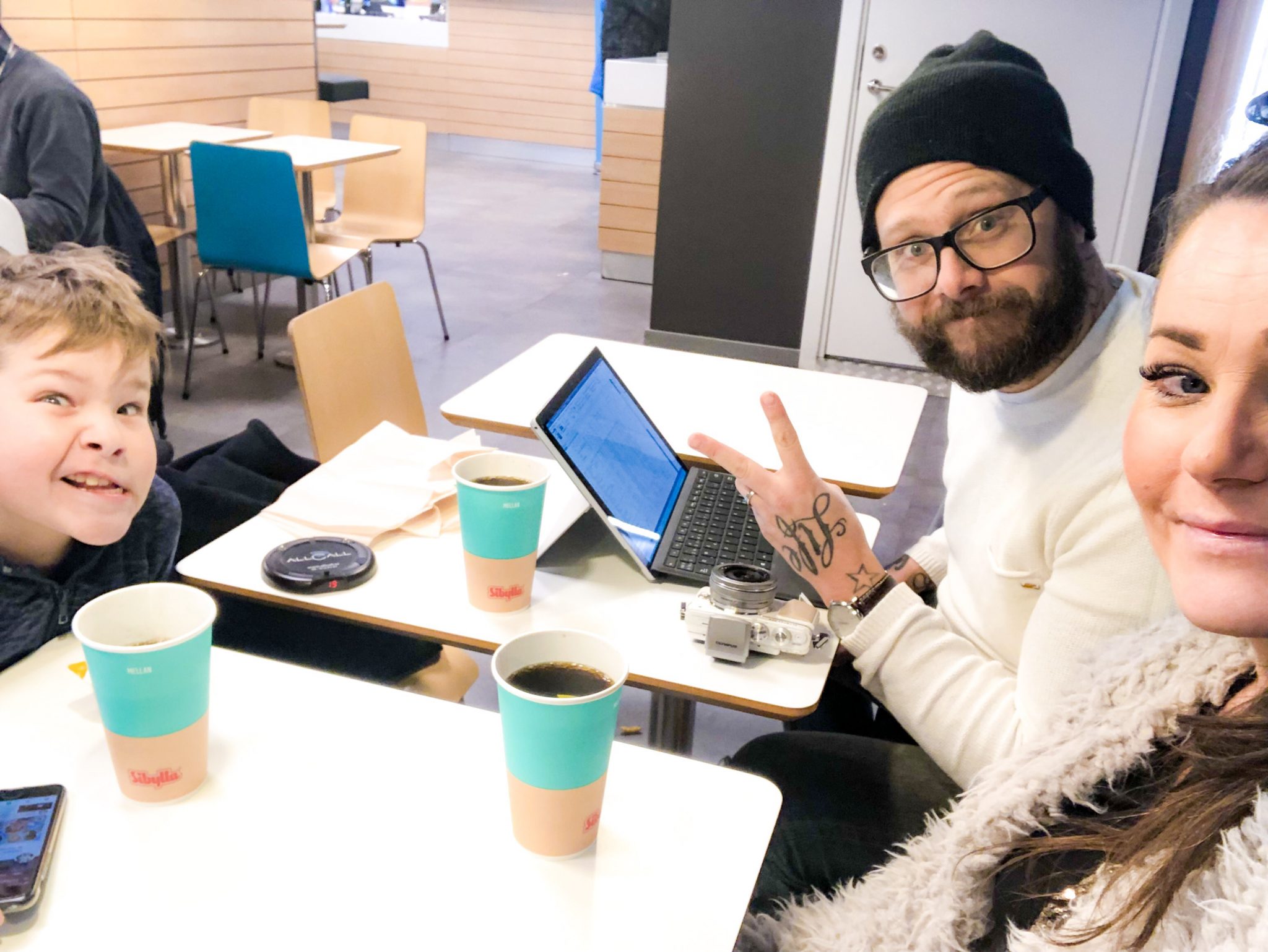 Vi stannade till på Sibylla i Rättvik. Tur då att vi fick el till våra laddare där. Min kamera som jag spelar in vloggen med blinkade för fullt nämligen. Tony fick jobba undan lite också.