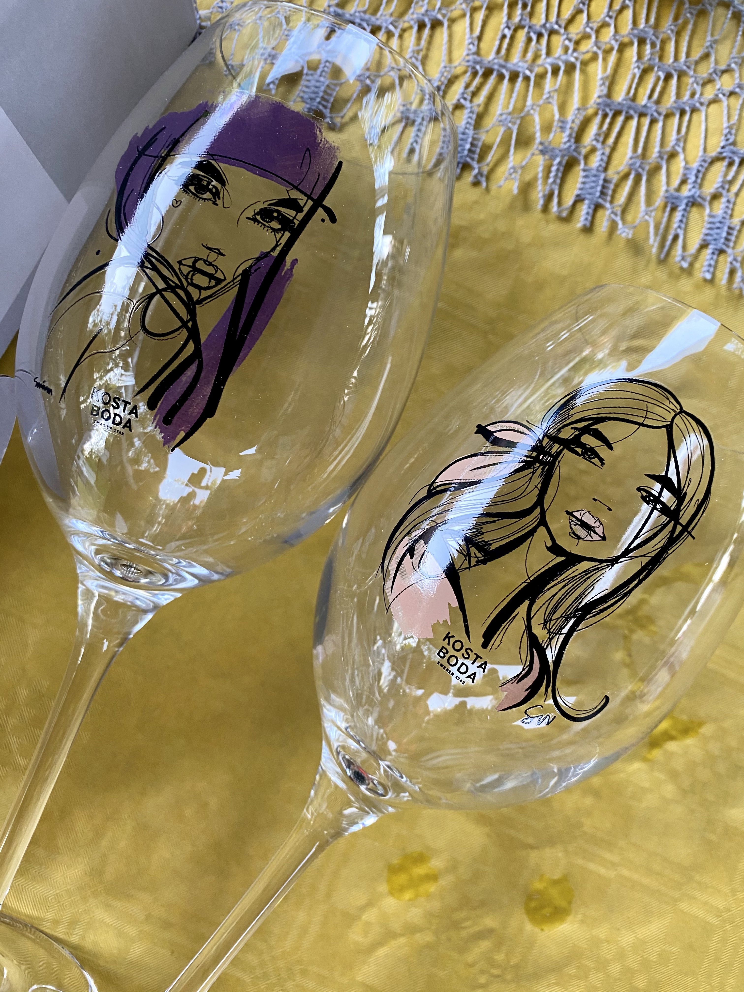 4 såna här vinglas blev det i present! Såg förresten nu att just dessa underbara vinglas från Kosta Boda som heter ”All about you” är på REA just nu. De lila hittar du HÄR, de beige/rosa HÄR! Älskar dom, ansiktena är såååå fina. Maja blev jätteglad över glasen också, kul när man lyckas.