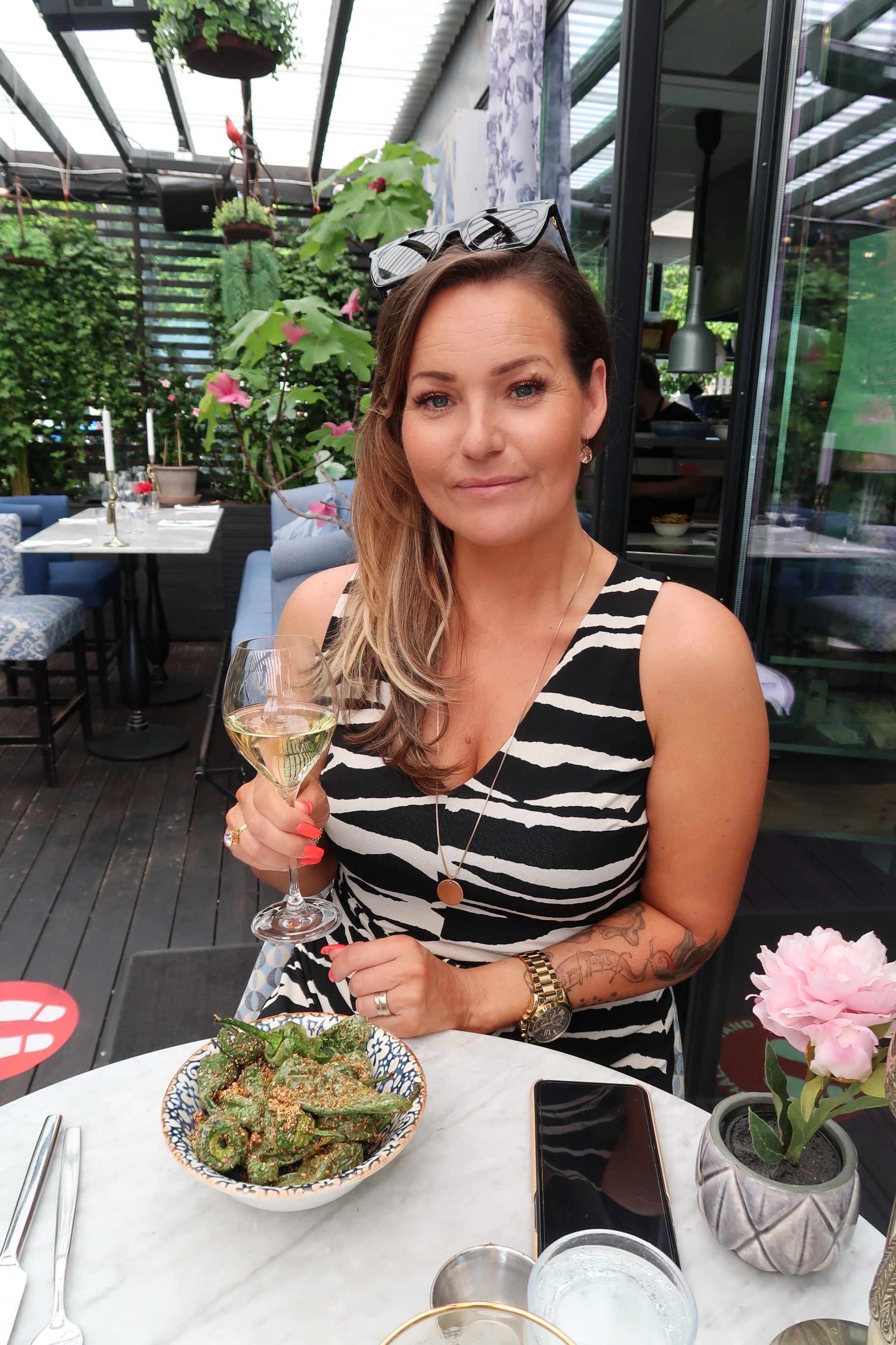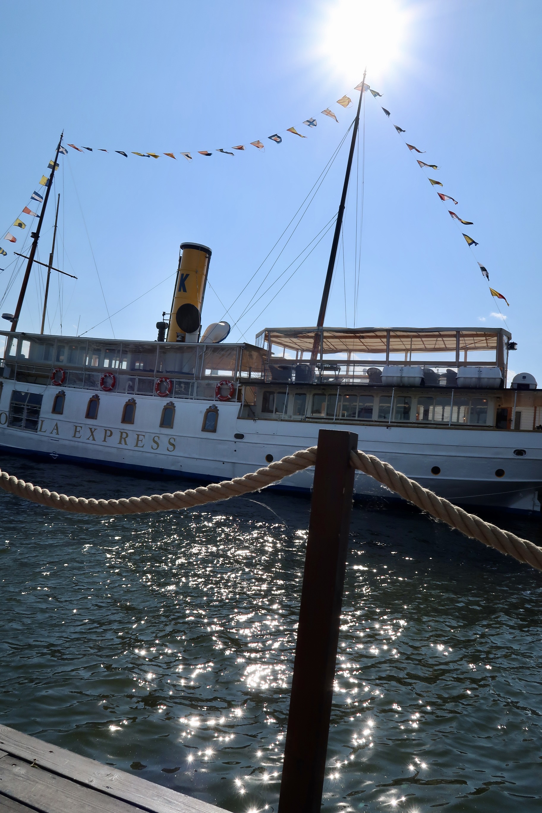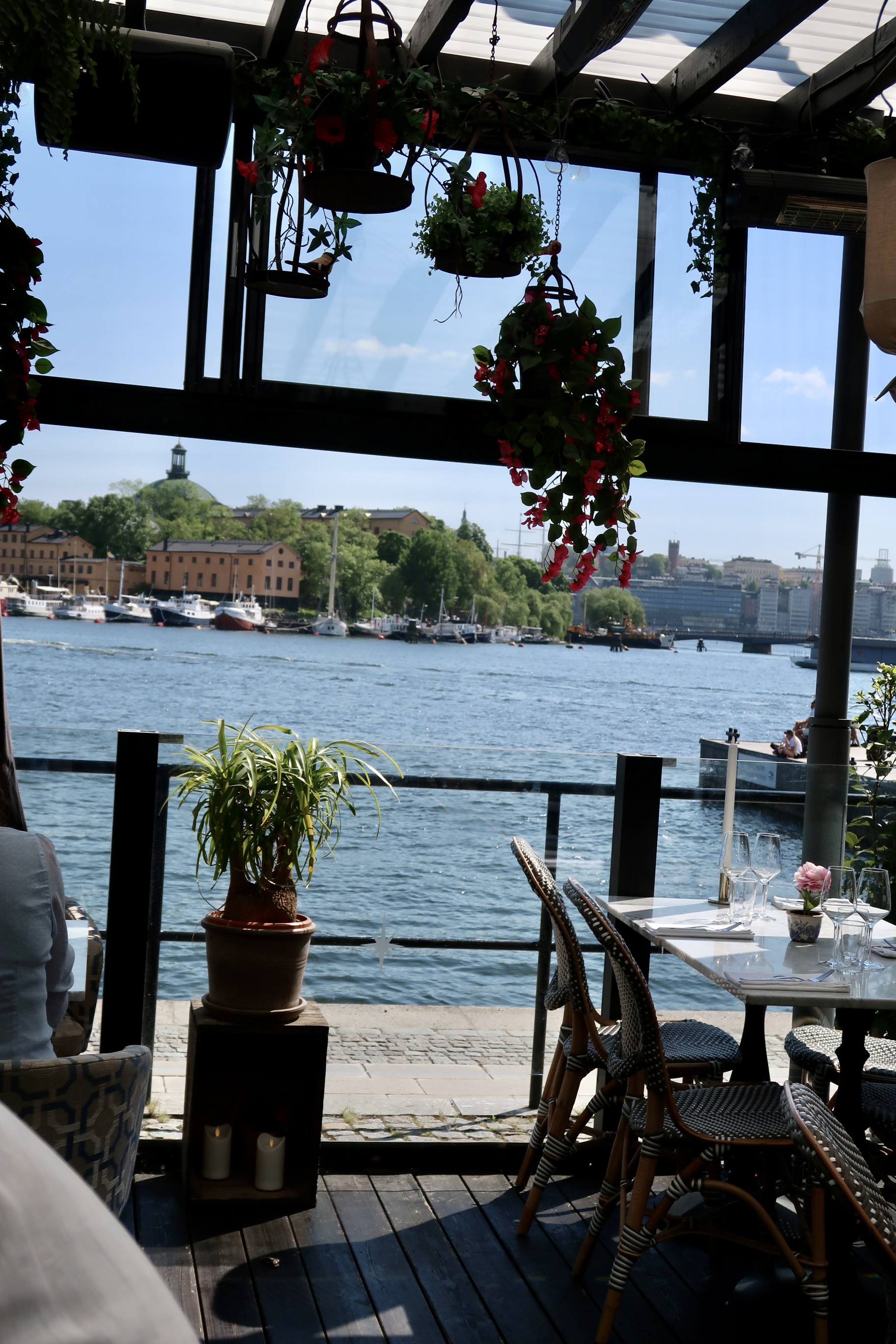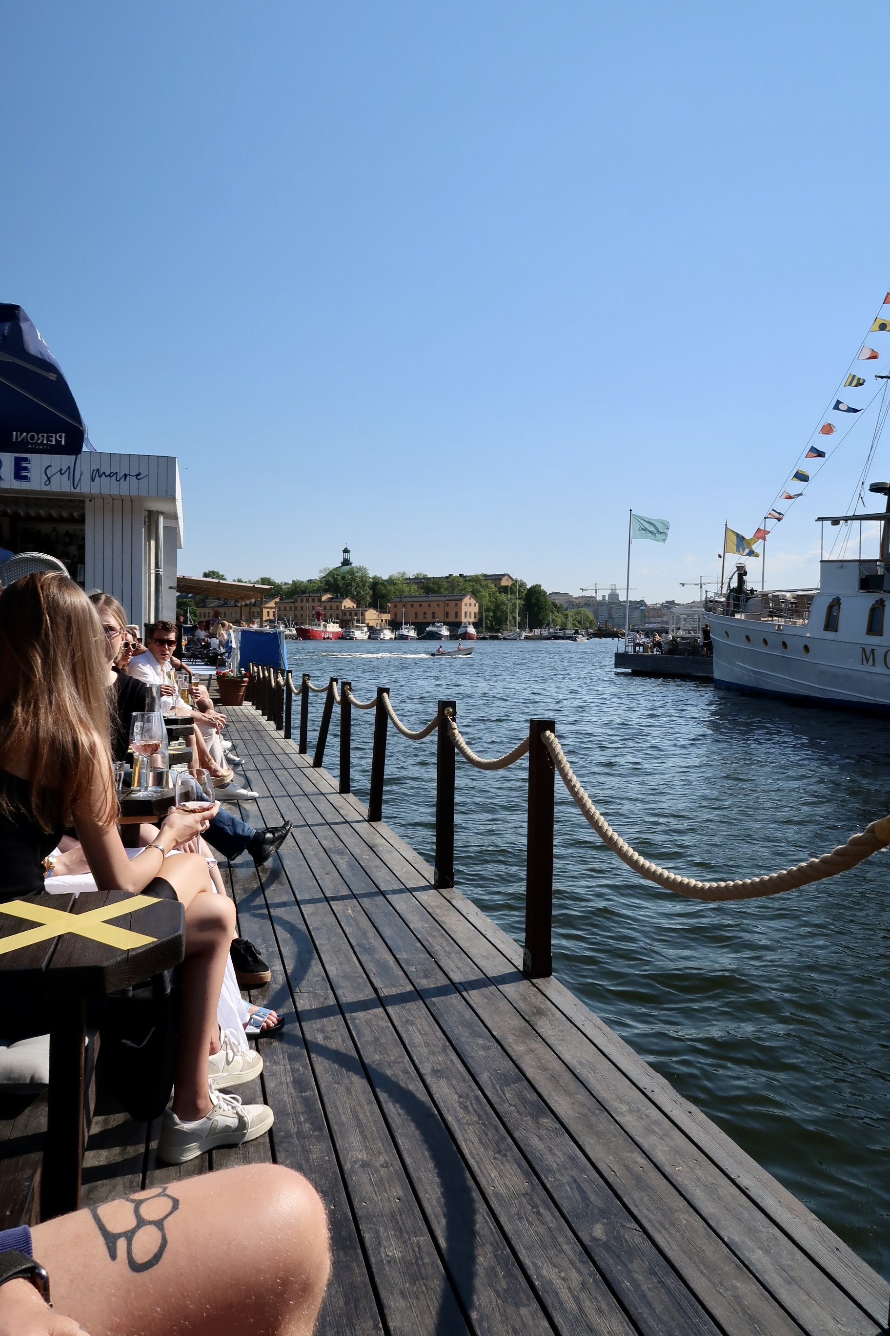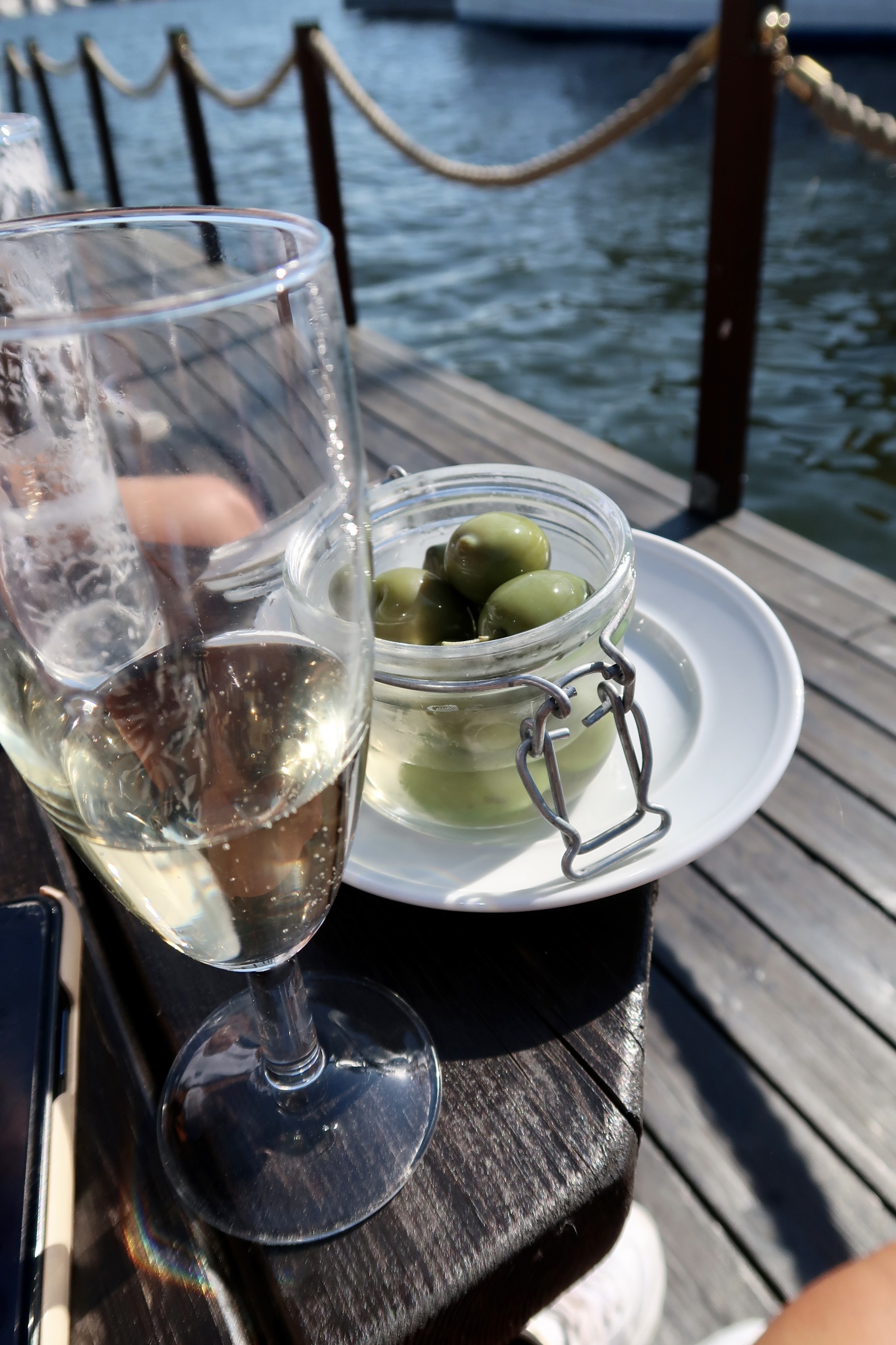 Efter maten gick vi bara ett stenkast bort till Ångbåtsbryggan, fick ett toppenbord där vi kunde sitta och njuta precis vid vattnet med ansiktet mot solen. Var tvungen att ta namnet på oliverna för de var de gooooodaste jag någonsin ätit. Sinisi heter dom och är från Sicilien. Stora, köttiga, smöriga och sådär galet juicy. Sååå gott till ett glas bubbel. Mums mums!