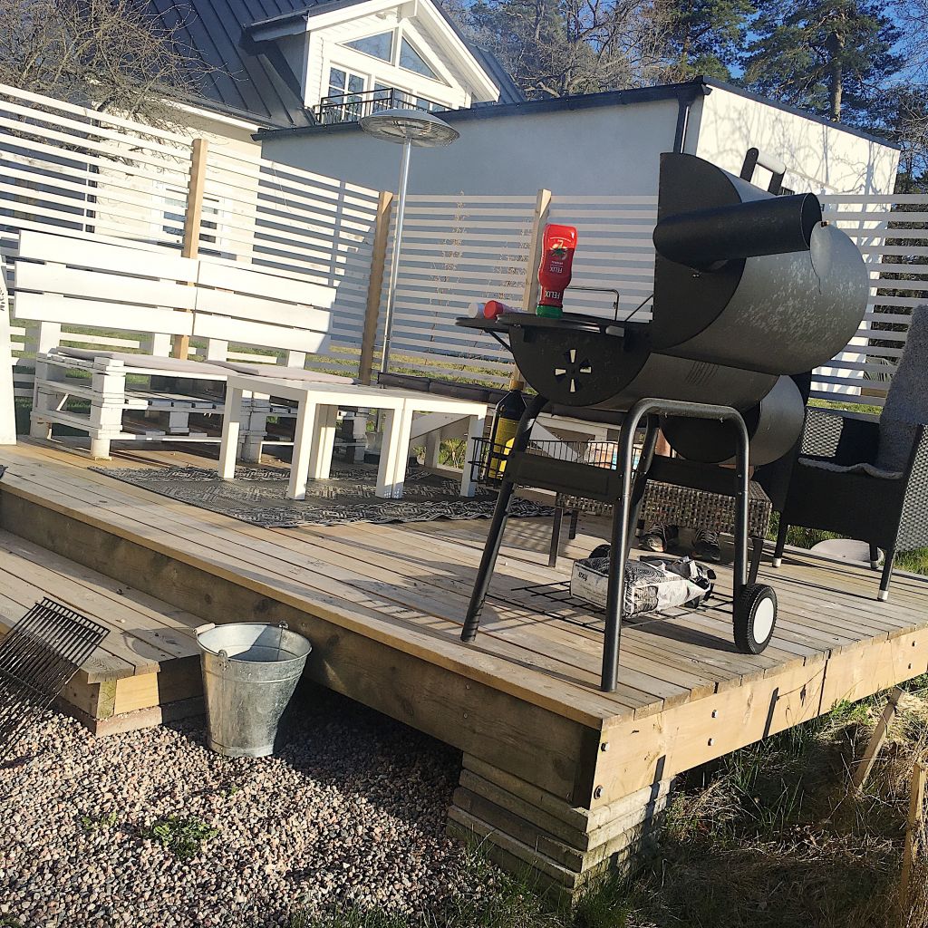 Eftersom det var en sååå ljuvlig kväll igår så grillade vi ute. Så skönt! Plockade fram lite grejer till altanen också. Bordet är inte som det ska ännu men detta fick duga tills vi fixar det.