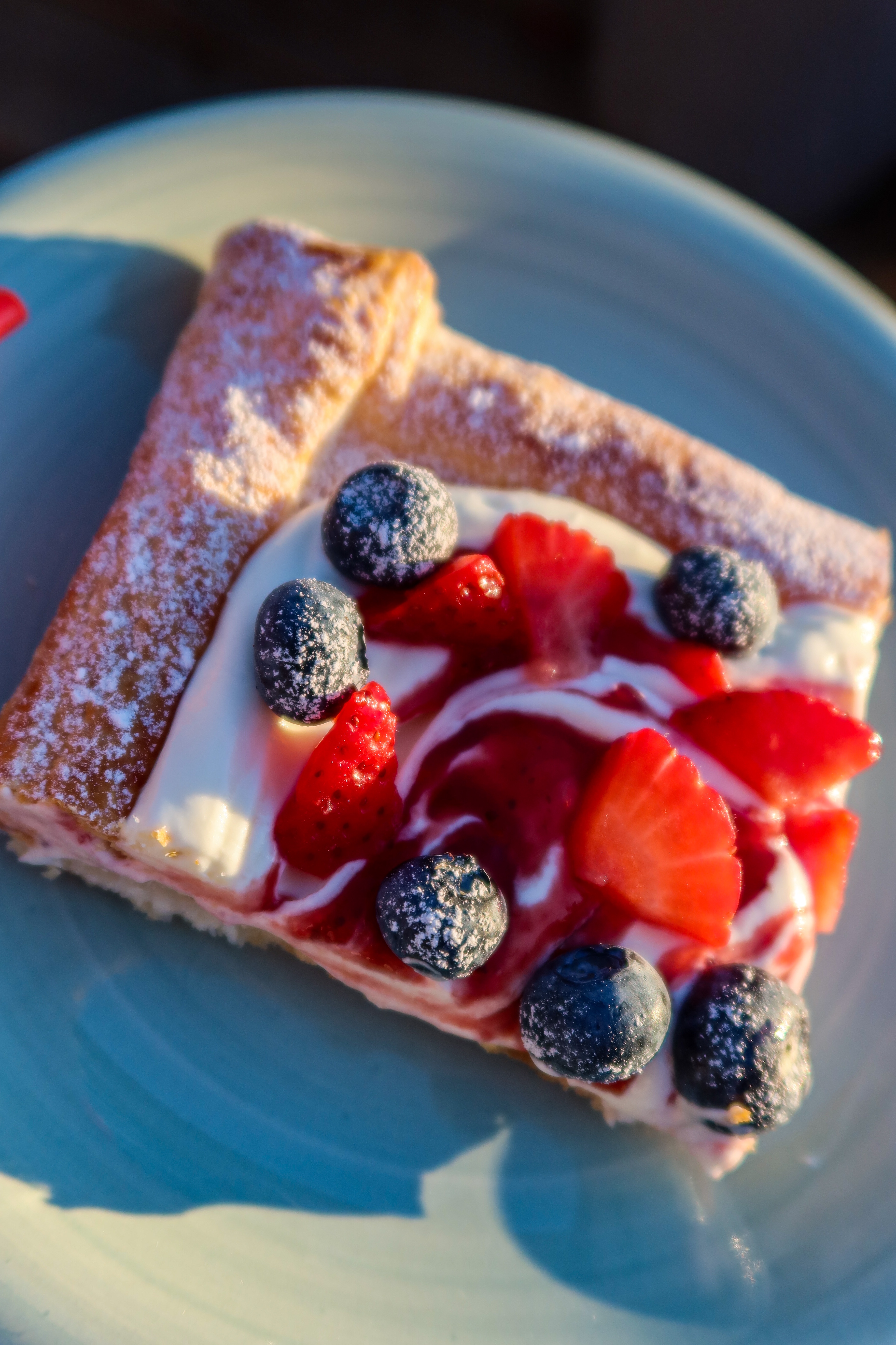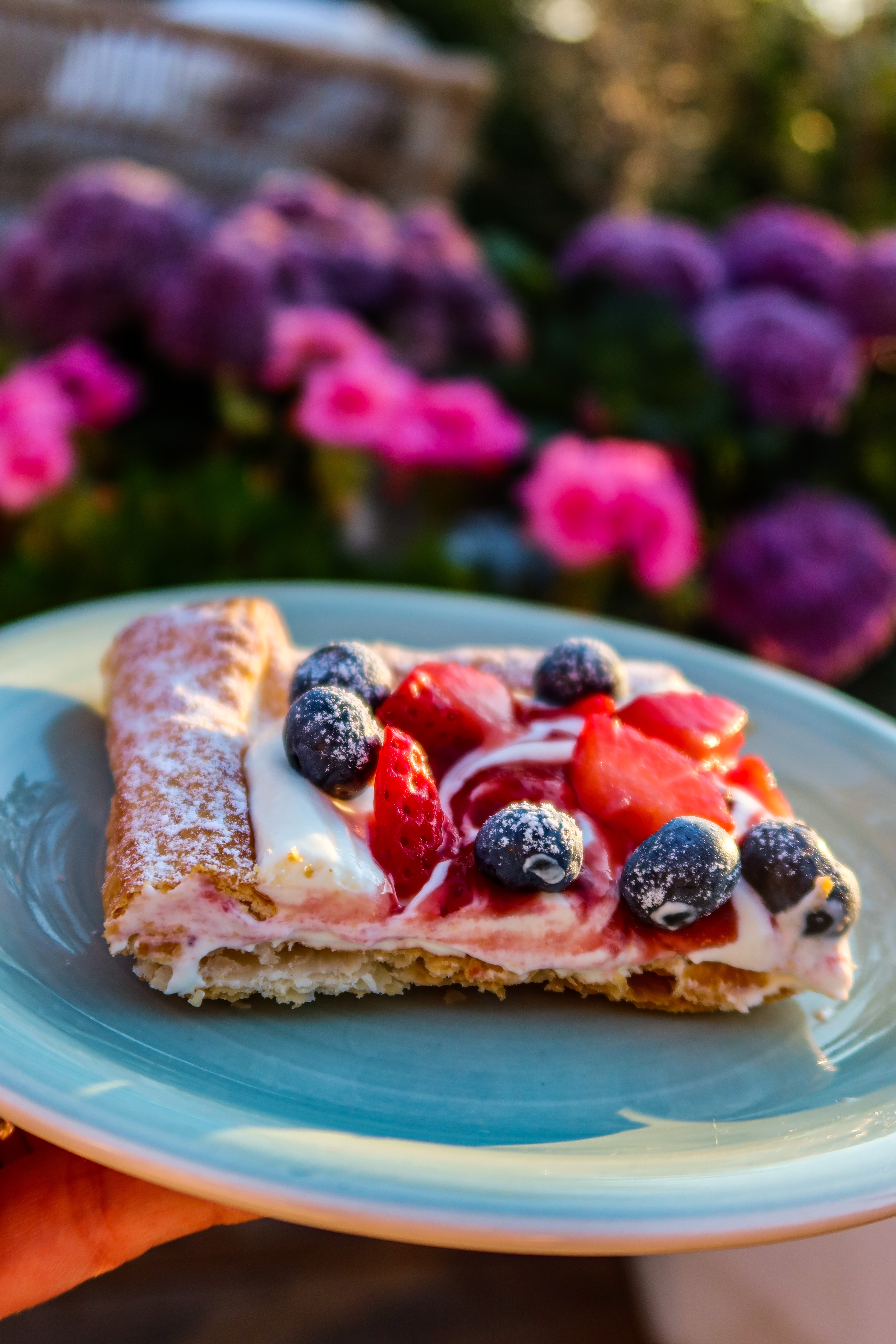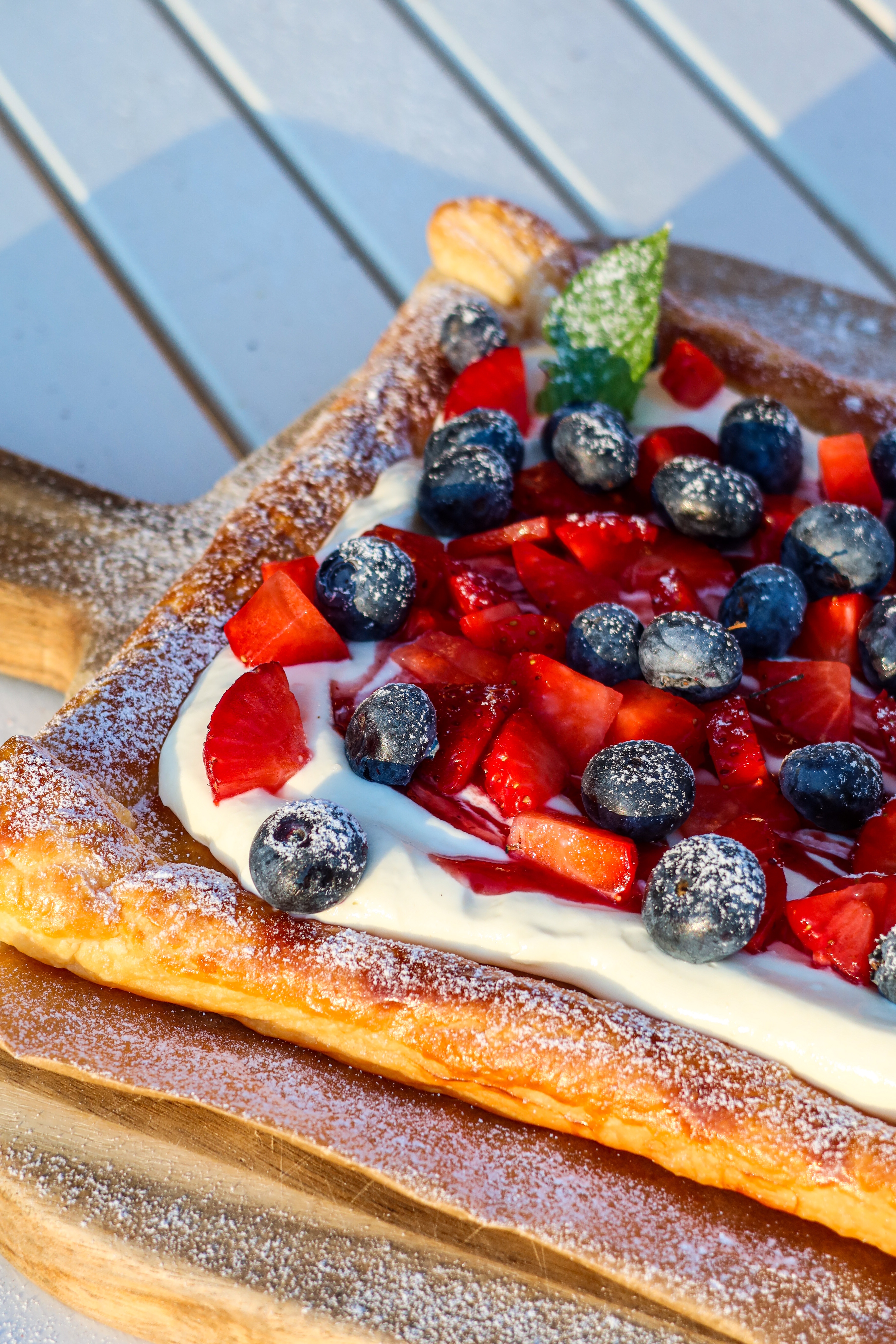 5) På med bär och avsluta sedan med att pudra över lite florsocker.