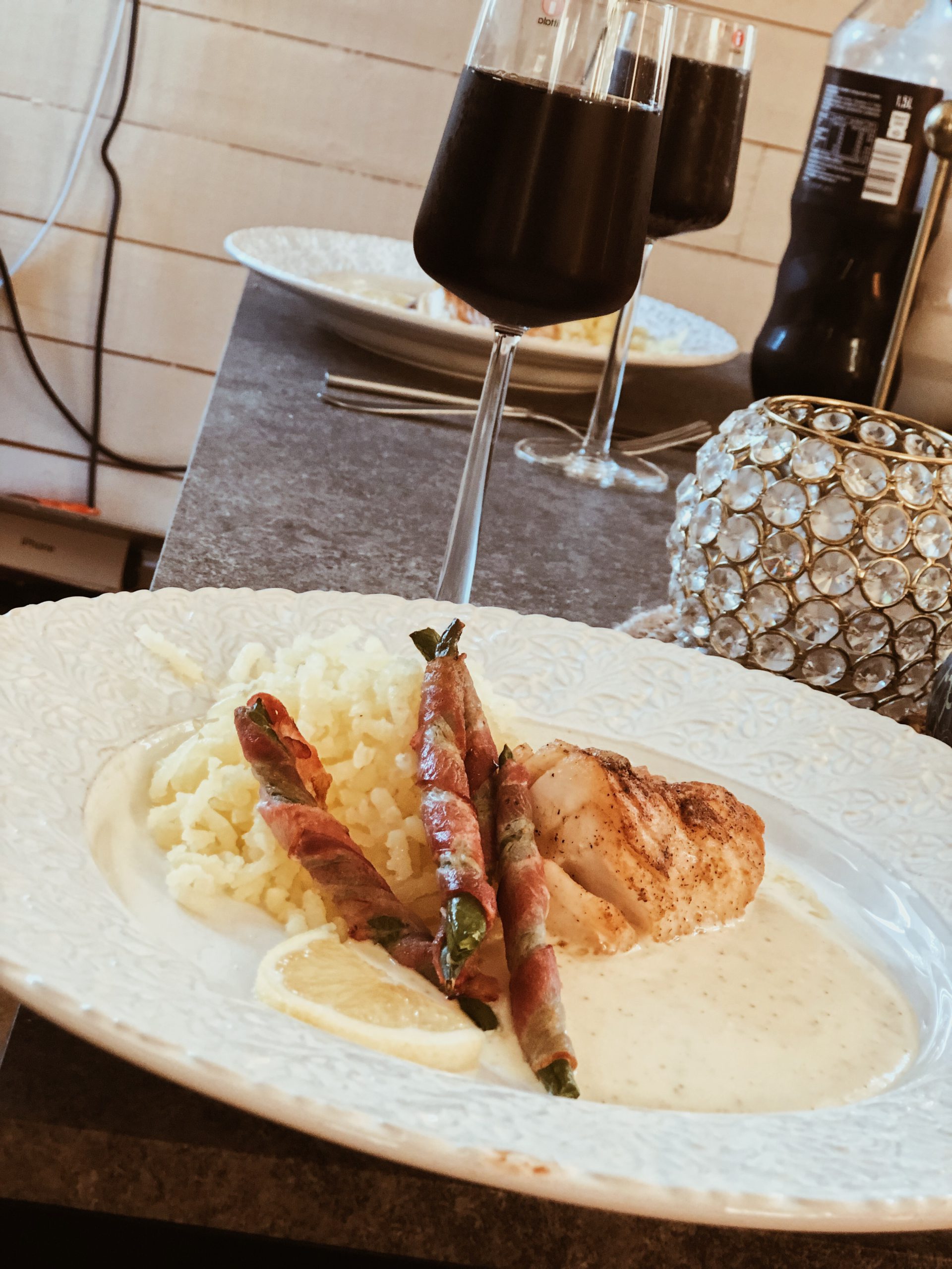 Under tiden som frun i huset låg och surade och pratade FaceTime med ”Mellan” så åkte mannen i huset och handlade mat och lagade mat åt sin sura fru. Favoriträtten också. Smörstekt torskrygg med pressad potatis, citronsås och iskall pepsi max. Då kände sig frun i huset jäkligt löjlig och blev snäll igen. Typ så!