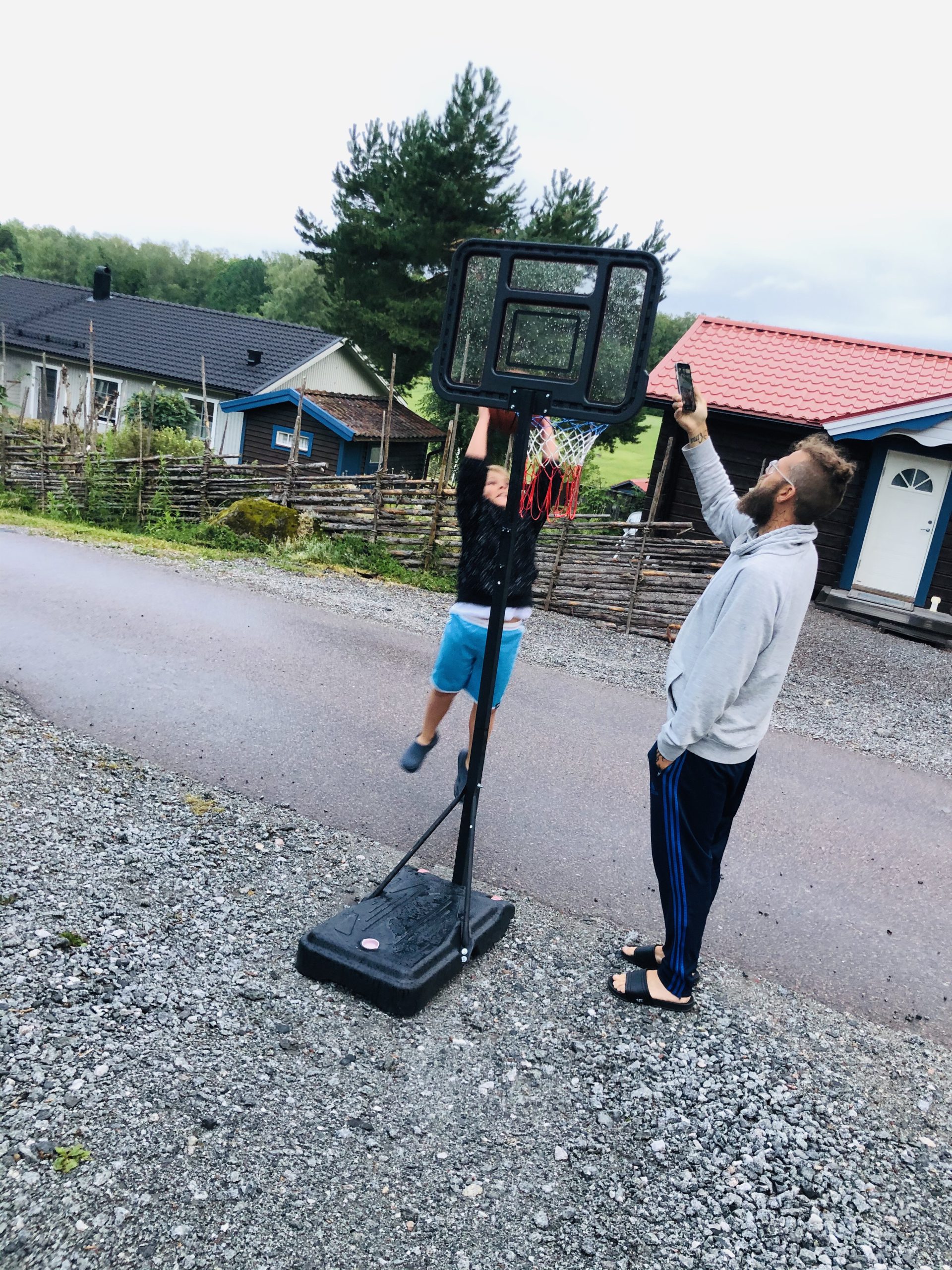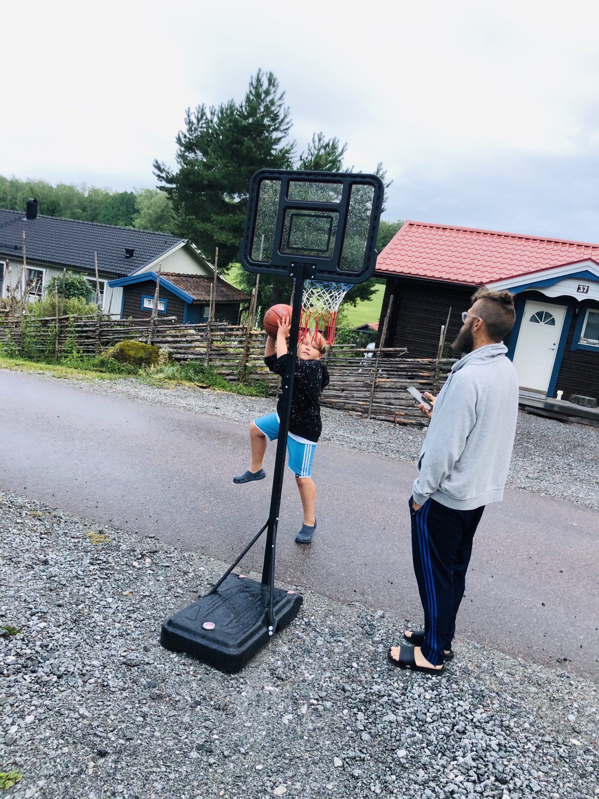Här har vi varit ute och kollat när Milo kört basket vid sin basketkorg. Nu ligger han i badet och kollar film. Snacka om att han tagit sommarlov på riktigt, har det hur skönt som helst!