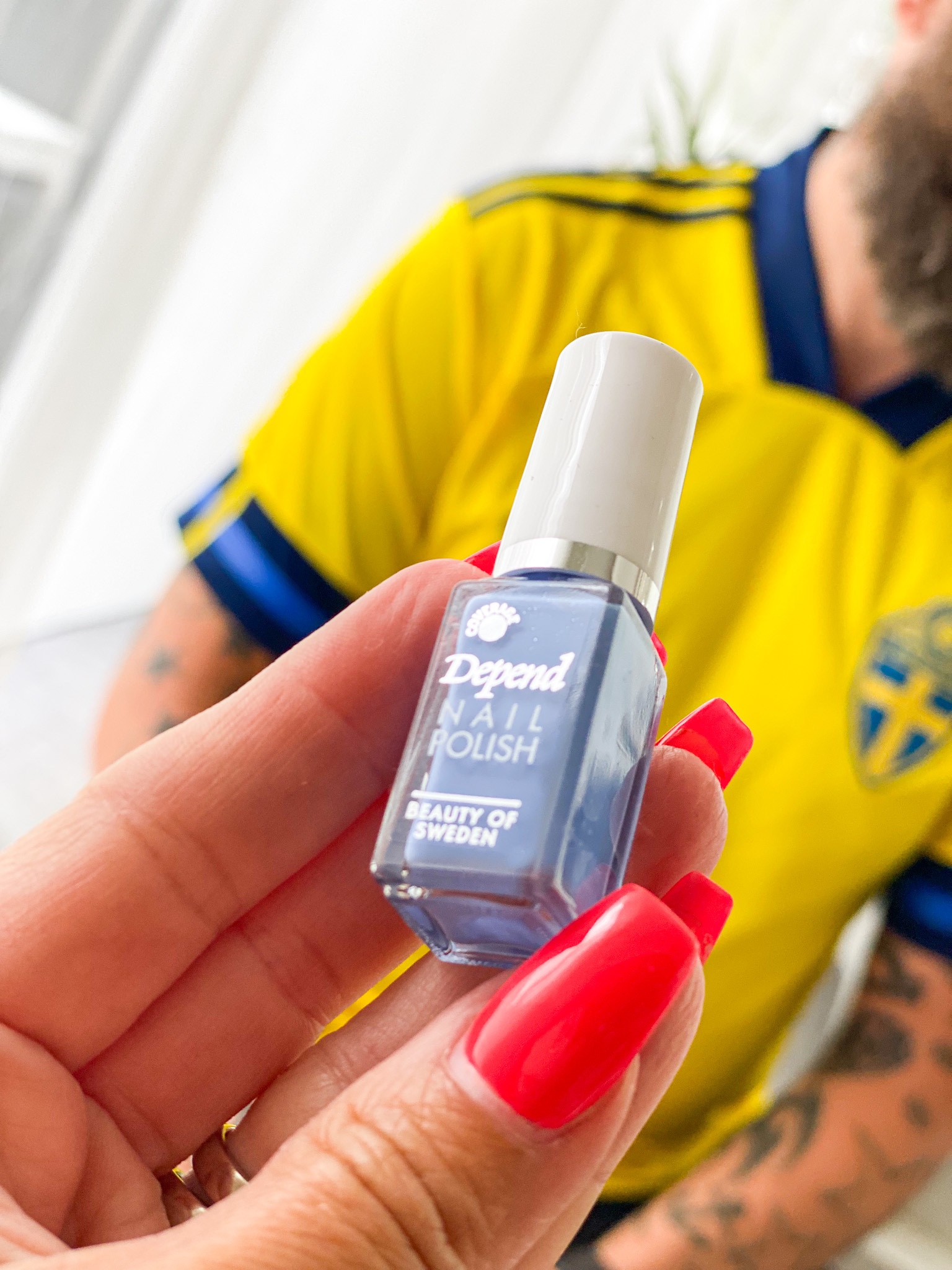 Apropå förberedelser, hittade så himla söta små nagellack från Depend. Testade denna söta blåa färgen dagen till ära, vad gör man inte för att heja fram vårt fotbollslag. 😀 Här hemma går Tony redan i fotbollströjan och laddar. HÄR hittar du nagellacket, 25% rabatt just nu.
