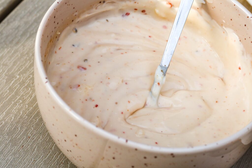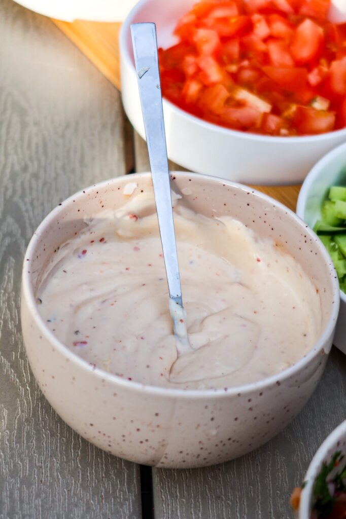 3. Vitlökssås: Blanda allt i en skål. Låt gärna stå en liten stund, då hinner den dra åt sig av vitlöken och blir så god.