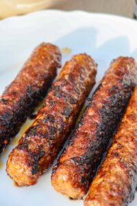 1. Blanda nötfärs med alla kryddor. Forma 5 stavar av det. Blanda allt till marinaden, pensla stavarna med all marinad och låt stå och dra en stund. Stek sedan i lite olivolja, pensla gärna med överbliven marinad medan du steker, de ska vara brynta & klara. (Stavarna kan grillas också).