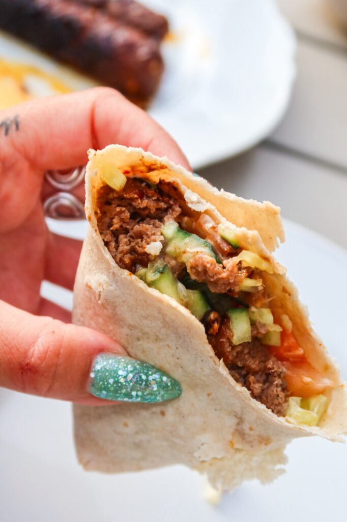 4. Dags att preppa tortillabröden, skär upp tacostavarna om du vill, du kan också ha i dem hela. Ha på Pico de Gallo och vitlökssås. Rulla ihop som en burrito och njut!