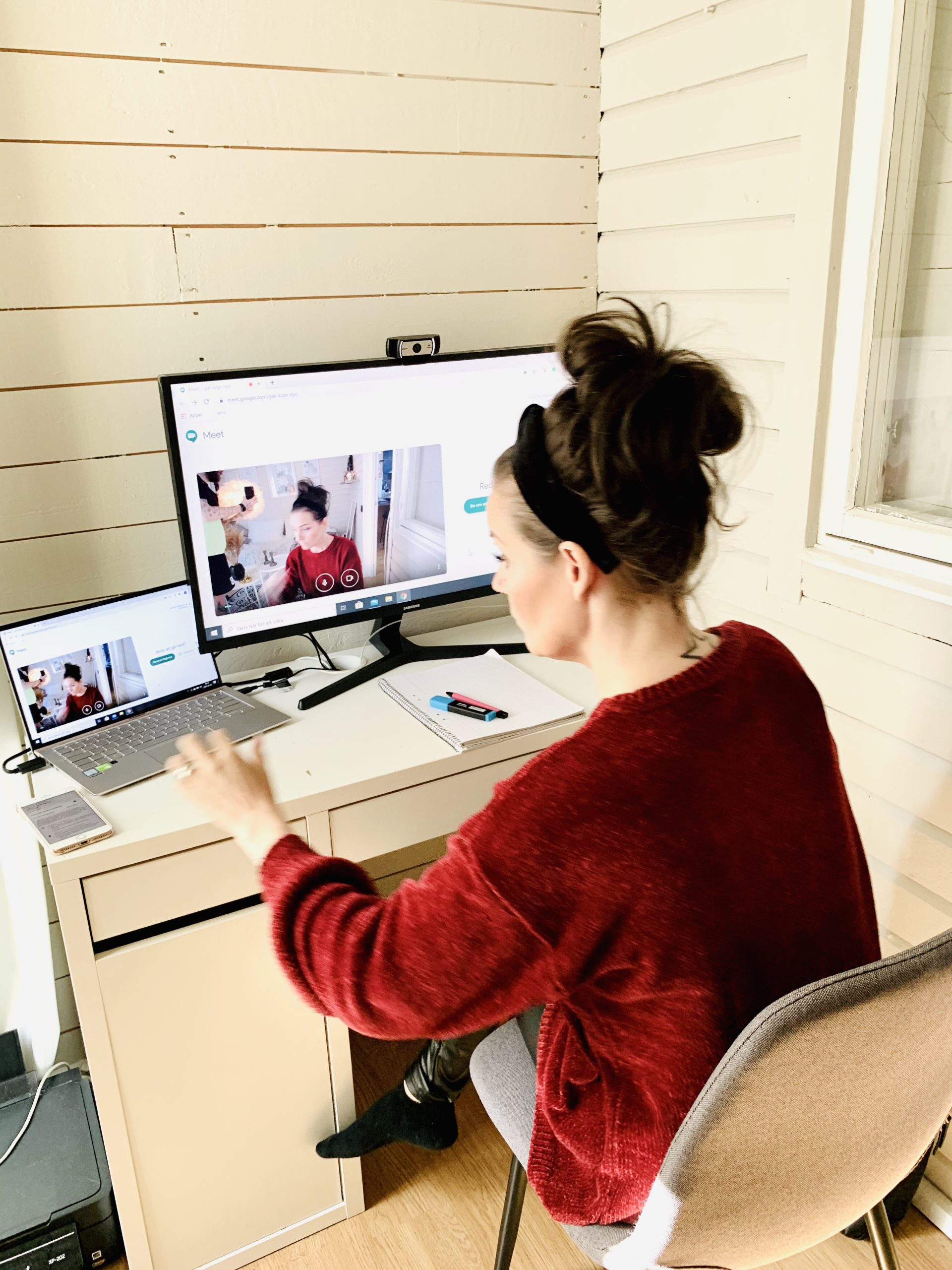 I morse startade jag dagen med ett möte med lite folk som jag ska jobba med framöver. Haha, vi skrattade så gott jag och Tony för jag är ju totalt rookie på det här med digitala möten medan Tony ju gör det varje varje dag, flera ggr per dag. Jag fattade typ ingenting….. haha. Visste inte vilka knappar man skulle trycka på. Vart man ska titta och sånt…. haha! Jag är ju för böckerna en kreatör och totalt värdelös på teknik. 😅😅😅 Sån tur att jag har Tony som faktiskt jobbar med just digitala möten, konferenser, ljud och bild och allt vad det kan innebära.
