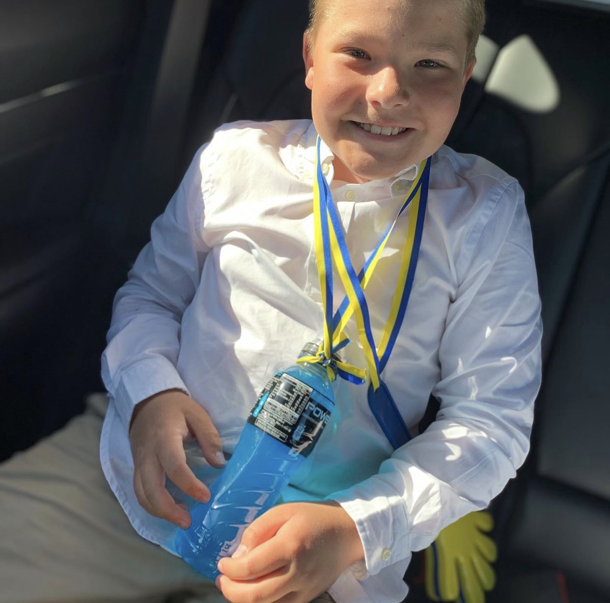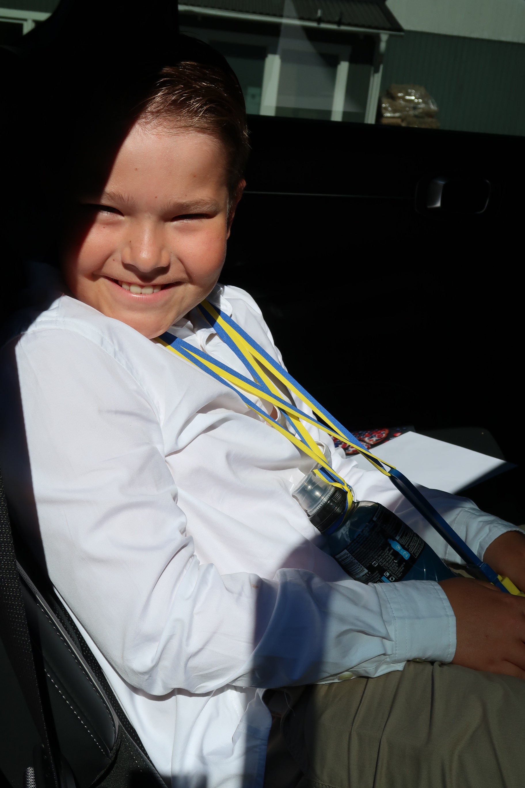 Vi väntade med en liten överraskning när vi hämtade honom efter de haft sin lilla skolavslutning i klassrummet.