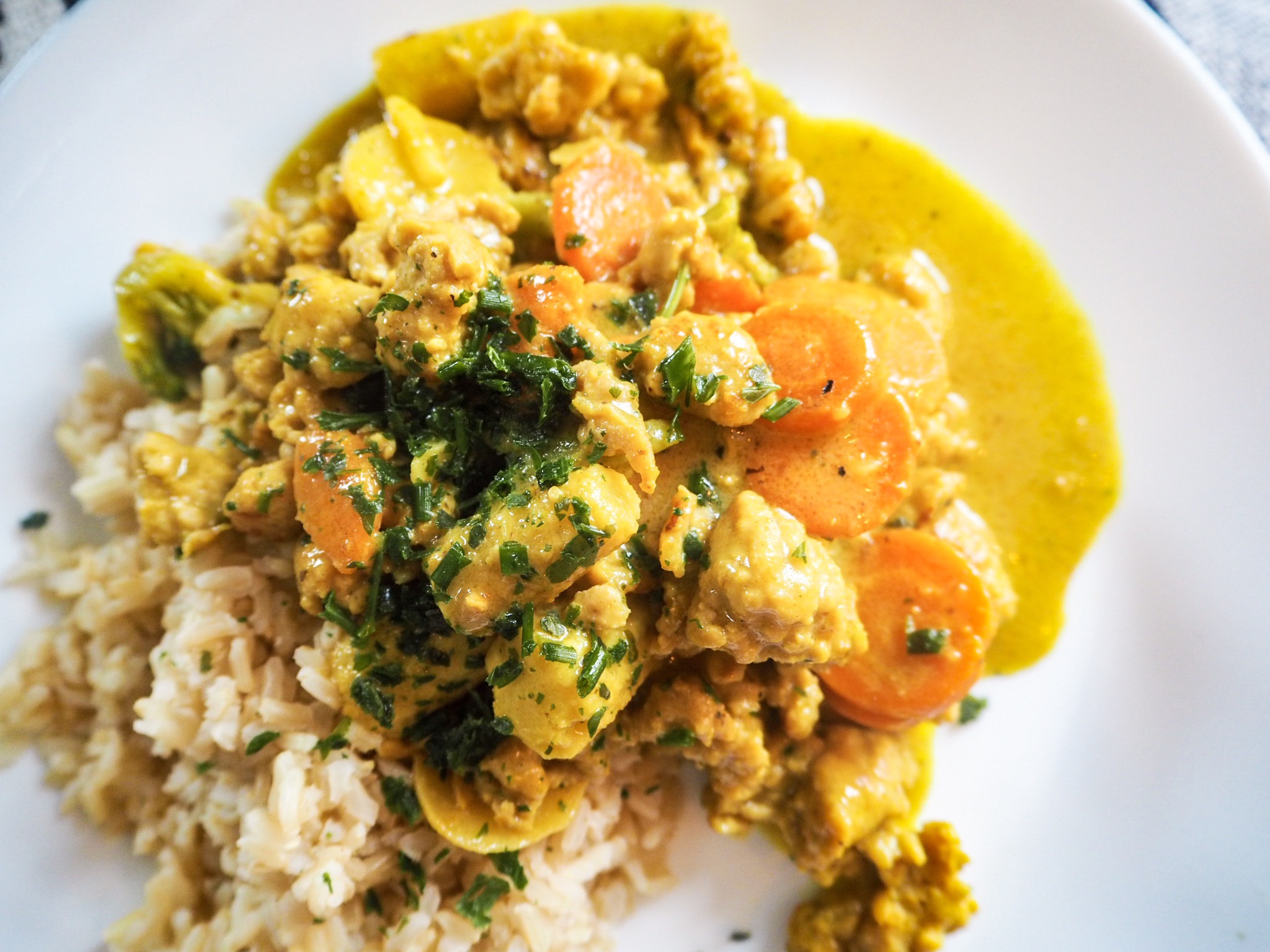 Vi serverade detta med fullkornsris. Funkar utmärkt att servera med ris, risnudlar eller vanliga nudlar.
