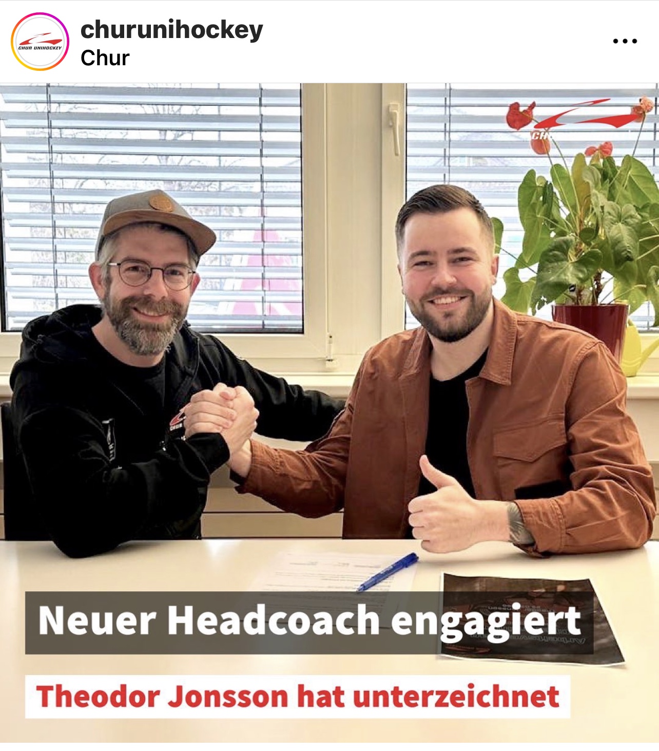 Jag kan också stolt berätta att han just skrivit på ett nytt kontrakt med laget Chur i Schweiz. Han kommer att bli headcoach i högsta ligan nu vilket hela tiden varit hans mål, och nu händer det. Laget har aldrig haft en så ung headcoach men de skriver att de har ett oerhört förtroende för Thedde som visat att han klarar uppgiften med bravur i sitt nuvarande lag.