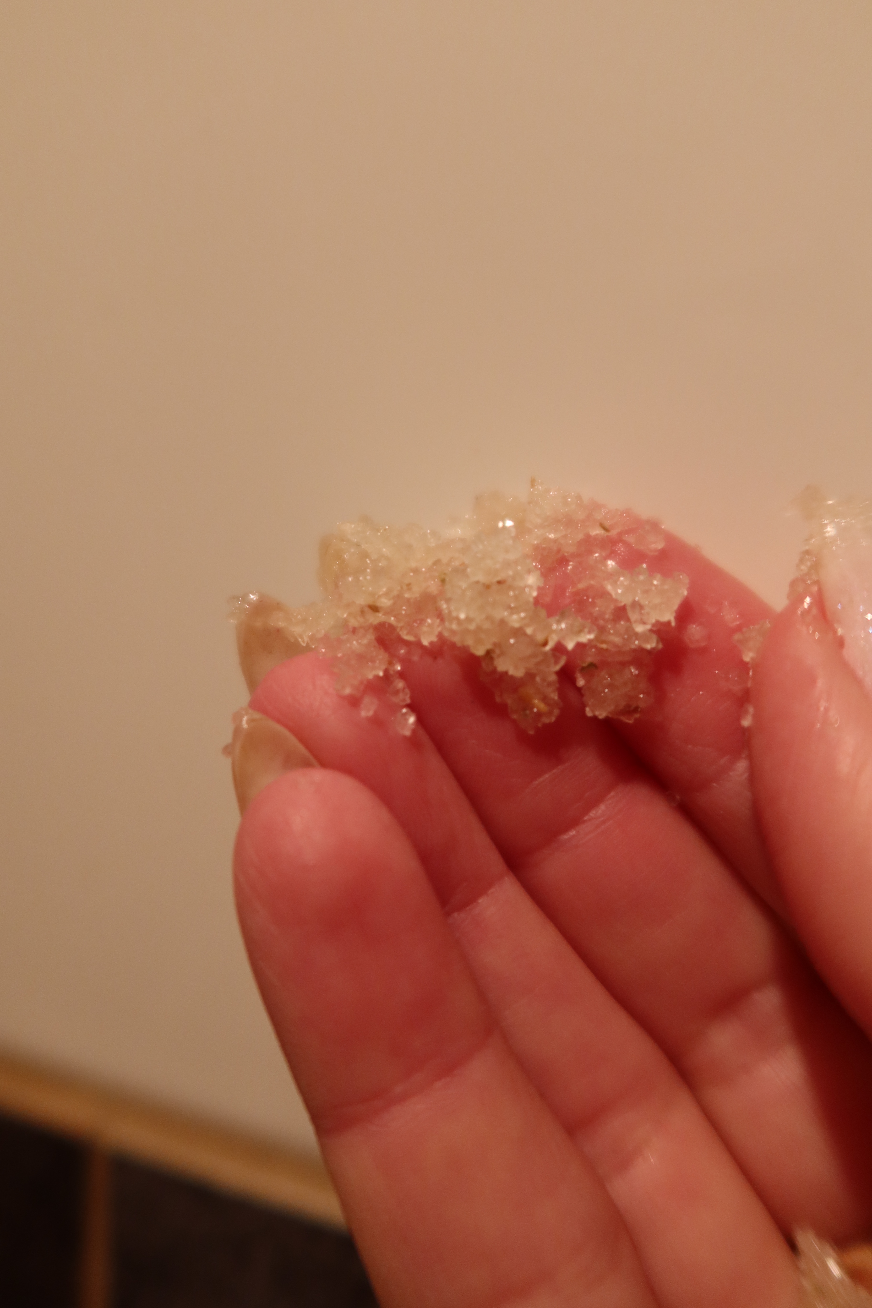 Den här scrubben är verkligen så härlig. Testa att bara ta en liten klick och köra på din hand. Den blir verkligen helt bebislen och mjuk, och doftar sååå härligt.