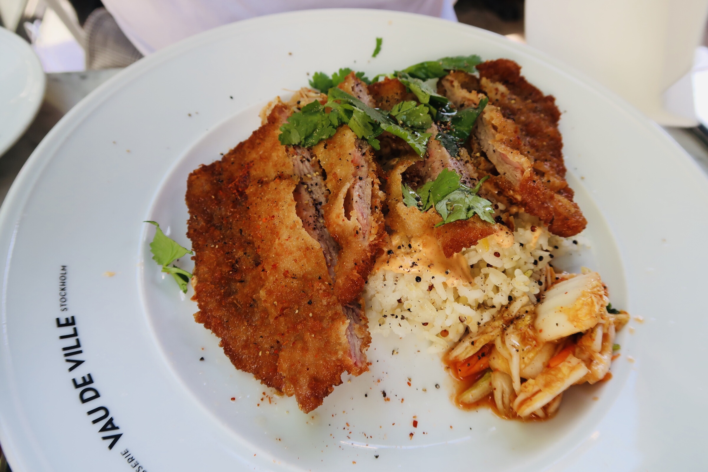 Tony åt kalvschnitzel och tyckte den också var supergod! Men om vi ska prata mer om halloumiplateaun så är den bland det godaste jag ätit. Den är liksom perfekt. Så mycket frukt och grönt med en dressing som är ”to die for” och så halloumi uppepå. Åker du dit nångång så testa den!