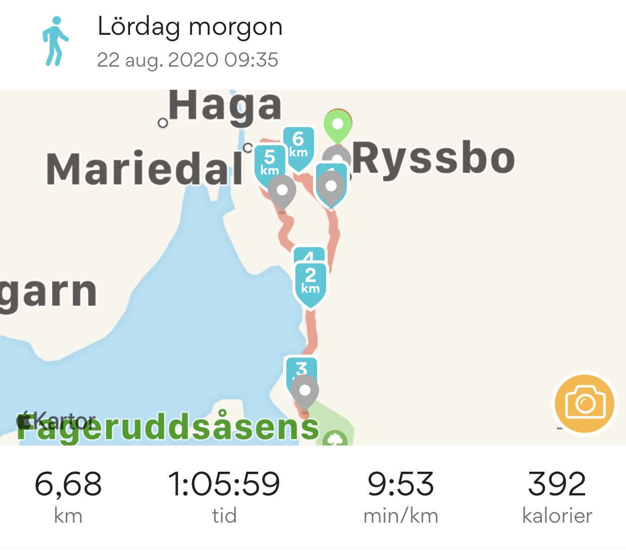 I morse blev det en promenad på 6,6 km och ca 1 timme och 5 minuter. Alldeles svettiga när vi kom hem, så kvavt här idag.