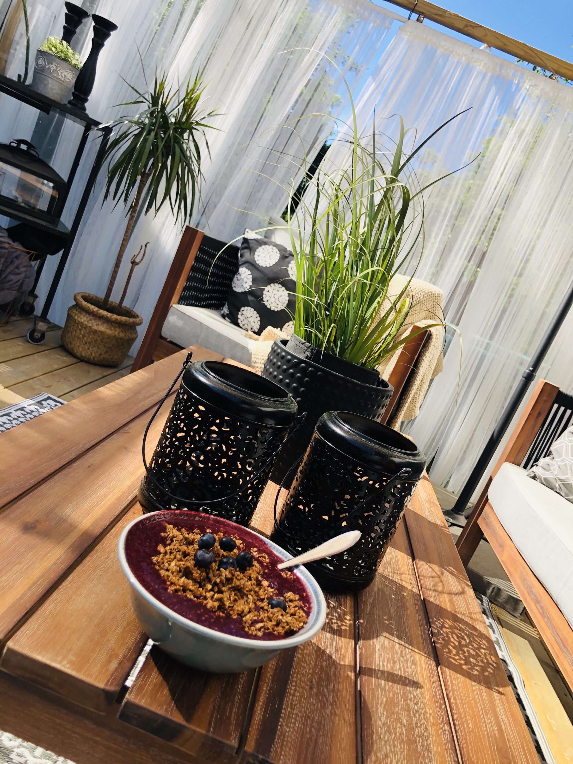 Blåbär runt munnen…. alltså den här frukosten bara ÄLSKAR jag! Hemgjord granola med hemgjord smoothiebowl. Frukosten är en av de härligaste målen på dagen! 🙌🏻🥰