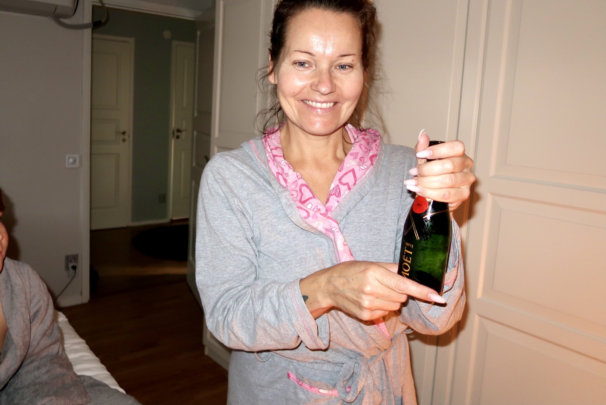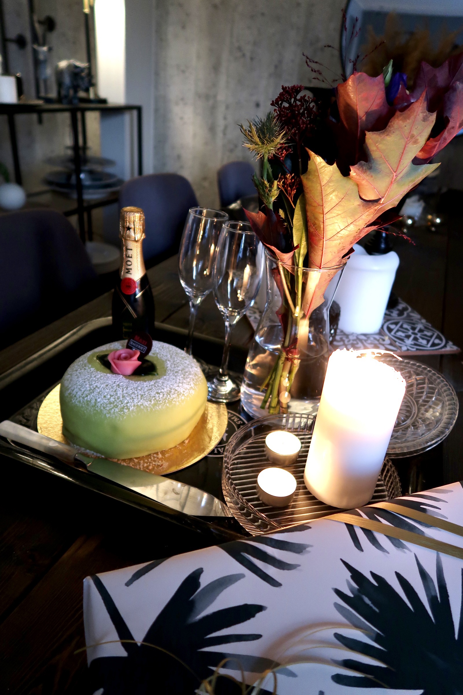 I torsdags var vi alla lediga. Jag tog semester åt Tony både torsdag och fredag och Milo fick vara ledig med oss i torsdags. Vi smög upp på morgonen och gjorde i ordning födelsedagsbrickan. Tony älskar Princesstårta så då fick det ju bli det till frukost, det och champagne! Köpte en fin liten bukett med blommor också som jag gömde i uterummet över natten. Han fick en ”dagens outfit” i sin morgonpresent av oss.