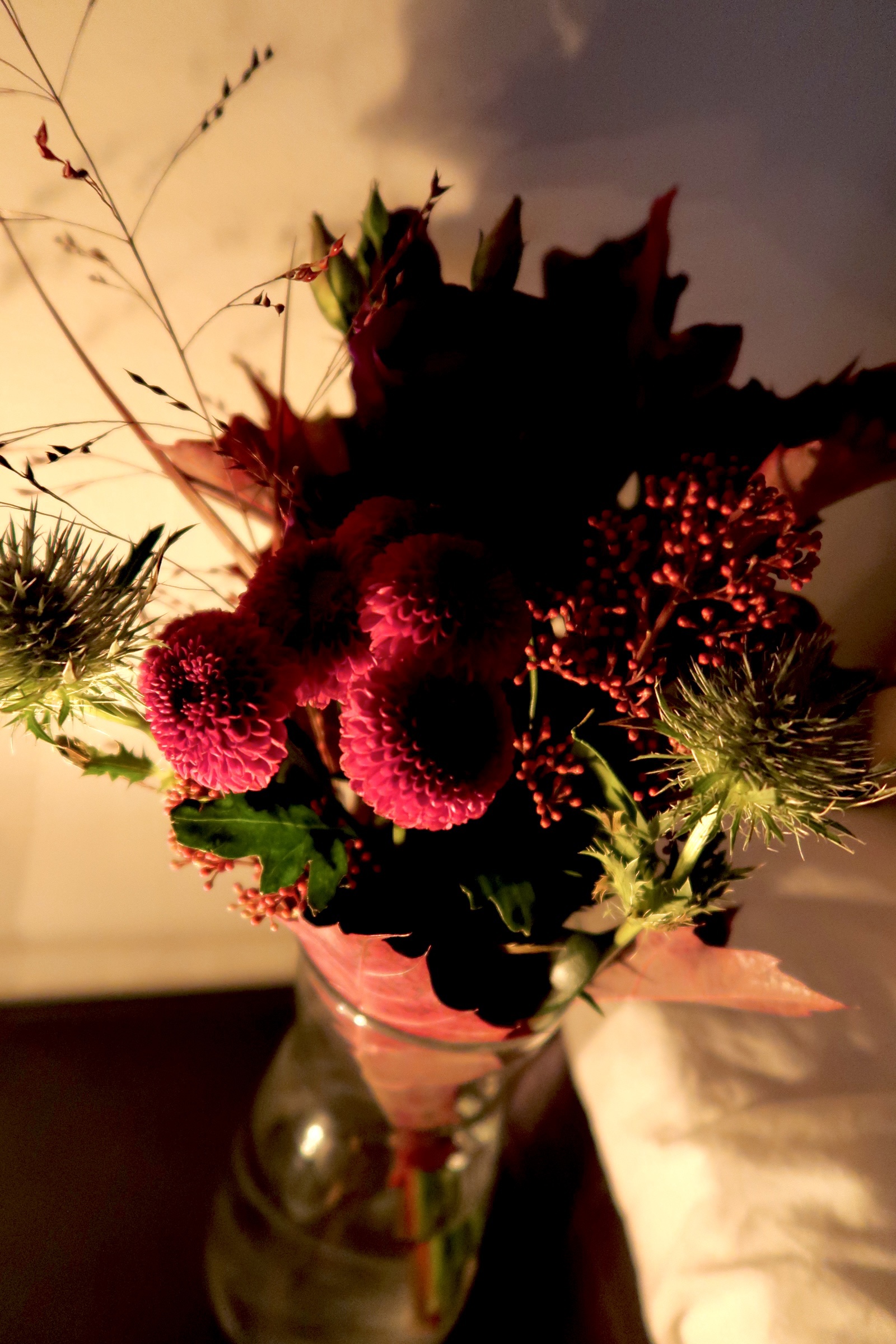 Blev eucalyptus och en kvist orkidé som jag nu ställt i en glasvas. Så fint och man kan inte ana att det är fejk.