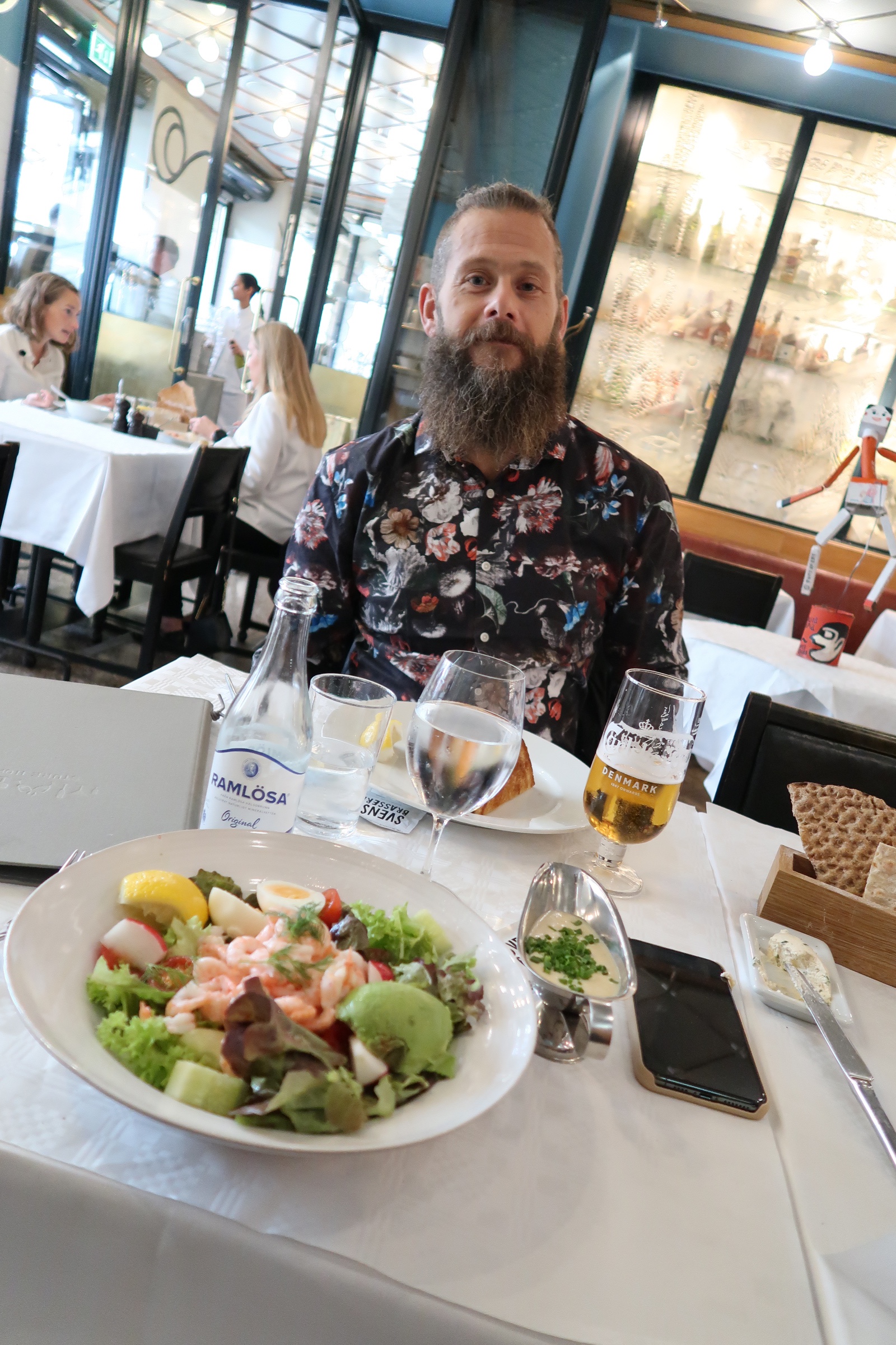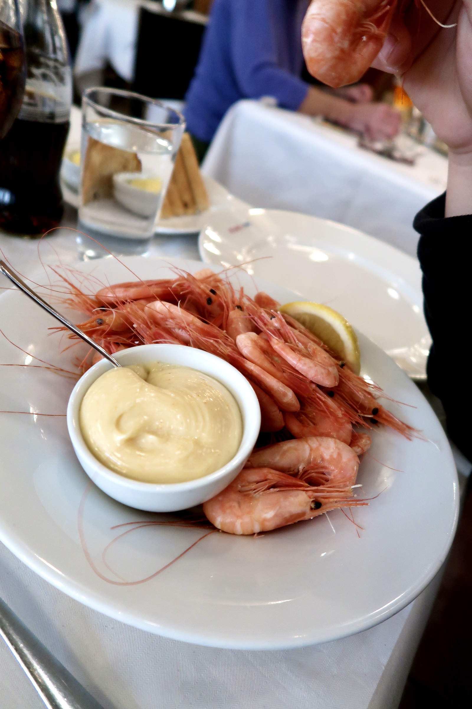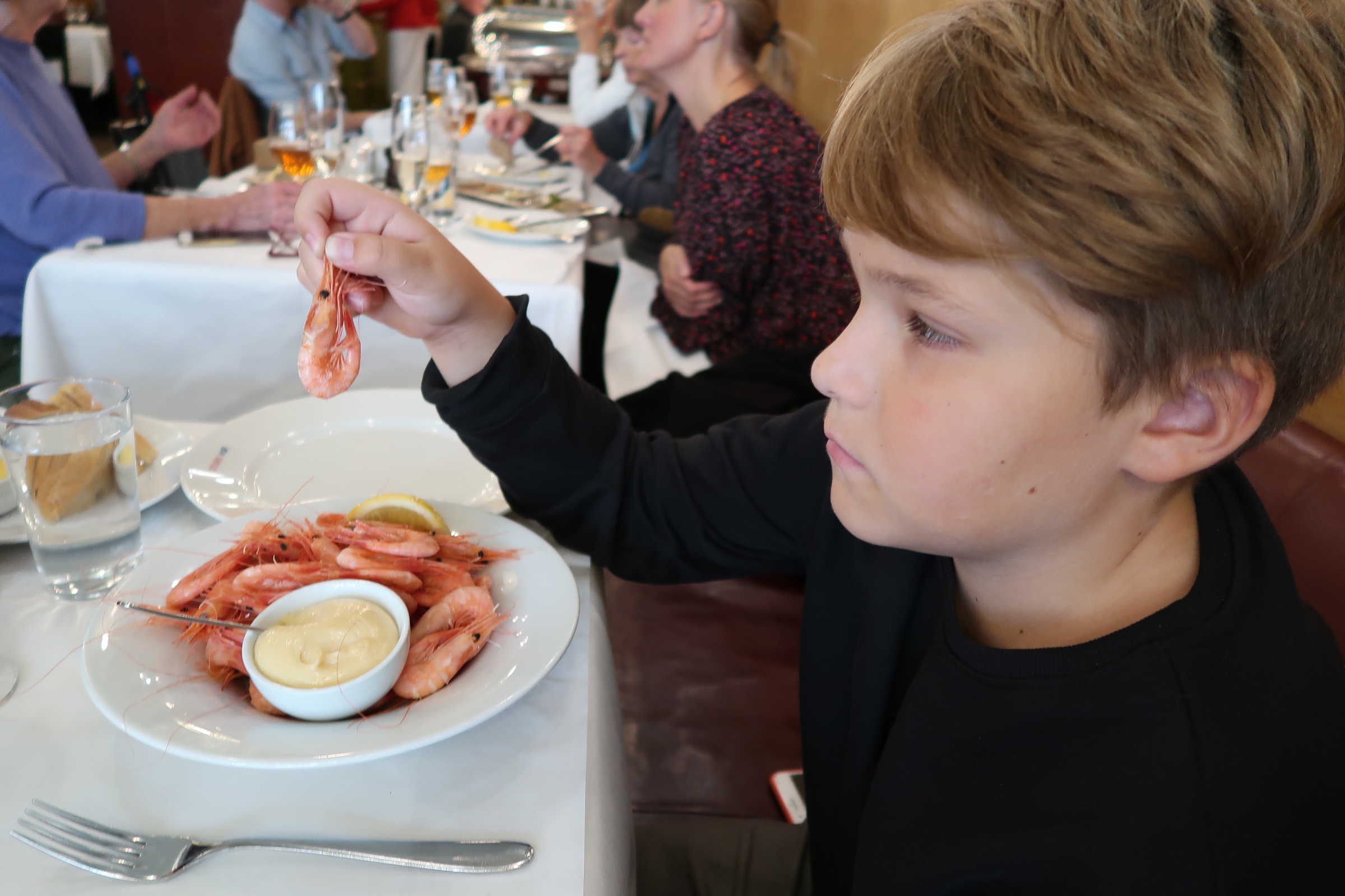 Kl 13.30 hade jag bokat bord åt oss på Sturehof för en lunch. Det är en av Tonys favoritrestauranger. Milo valde oväntat nog en skål med räkor…. han är så rolig för han gillar att testa nya saker. Jag fick lära honom att skala räkorna och sen körde han igång. Blev säkert jättegott när man fick kämpa lite. Vi åt så gott och satt och njöt länge.