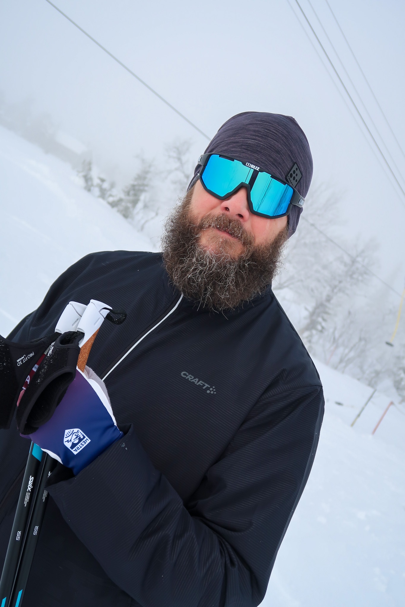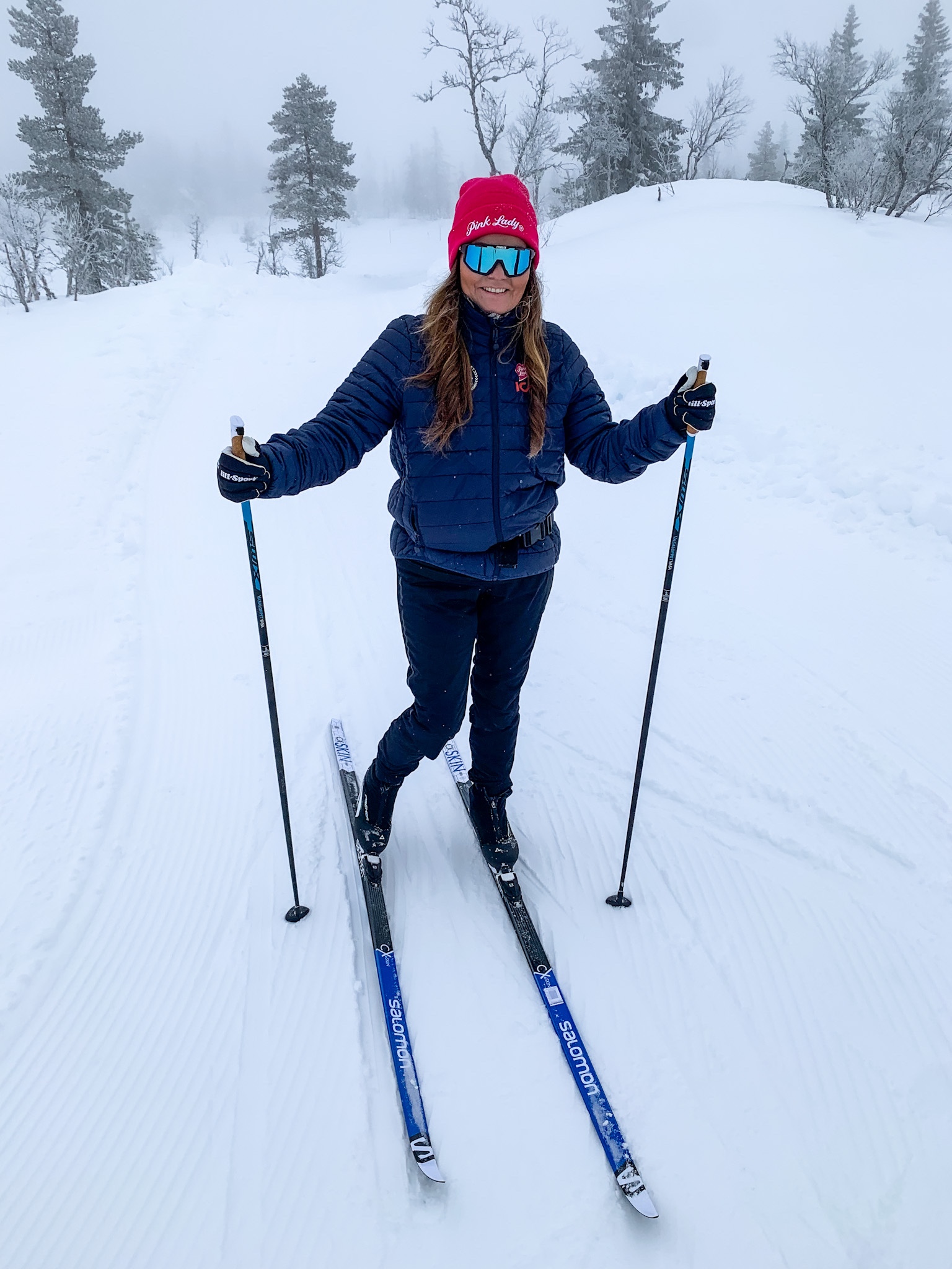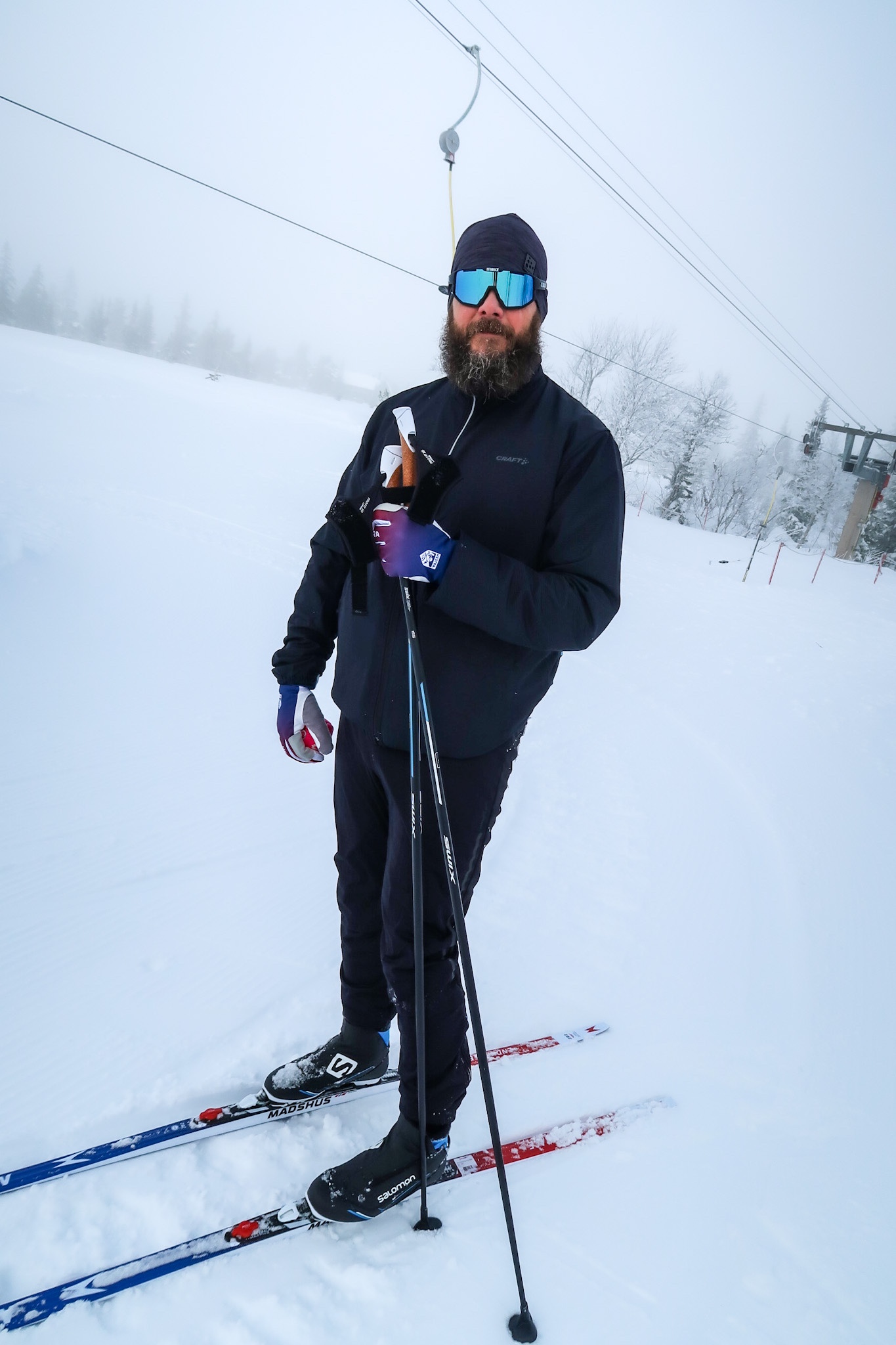 Åtet till längdskidåkningen då. Så taggade till tänderna såklart! Innan vi kom iväg så skrattade jag så jag kissade på mig. Att få se Tony på skidor var som att titta på ”Bambi på hal is”. Ni som följer mig på Instagram (<länk) kunde se i story hur jag skrattade så jag nästan svimmade. Han hade inte åkt på 25 år så han hade liksom helt glömt bort allt. Jämför man det med snowboard och slalom så är det ju så jäkla wobbligt alltså. Fötterna sitter ju liksom inte fast i nånting mer än ett litet fäste längst fram. För mig är det runt 10 år sen jag åkte, man glömmer bort mycket på 10 år.