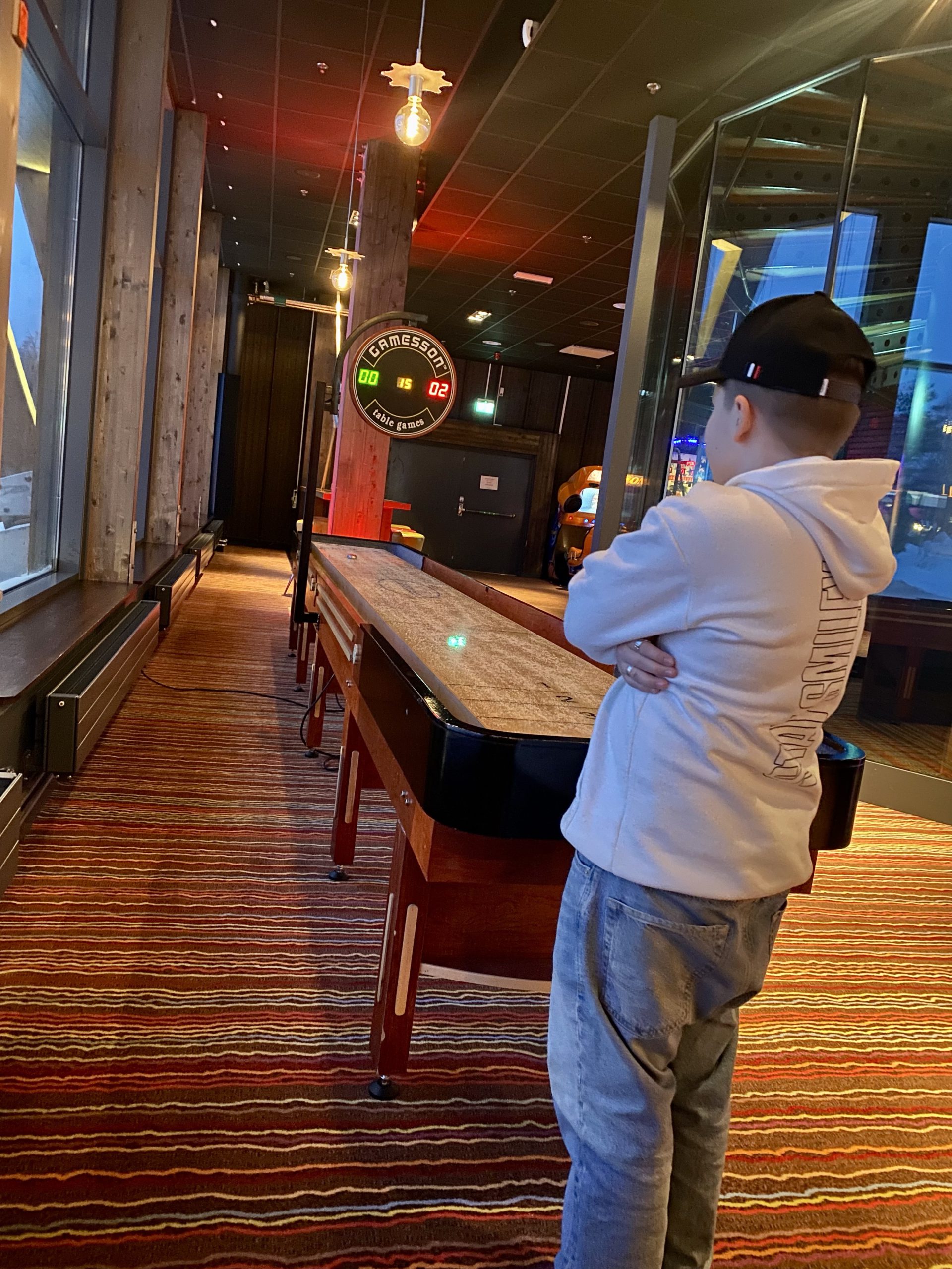 Igår hade vi bokat Shuffleboard och bio. Milo är supergrym på Shuffleboard och köpt både mig och Tony.