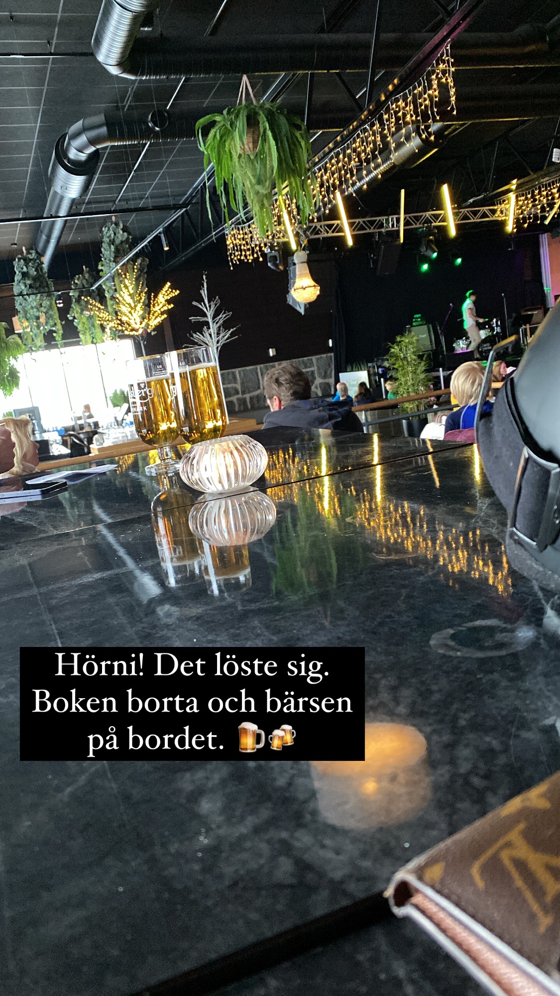 Inte blev det bättre av att det satte sig en person bredvid mig och började läsa en bok. Utan alkohol. Alltså jag säger inte att man måste dricka alkohol….absolut inte….jag dricker ofta själv alkoholfritt. Men för mig kändes mitt ”ensamdrickande” liksom ännu hemskare när personen satt där som Moder Theresa. Men men, det ordnade upp sig med den saken också till slut….. haha!