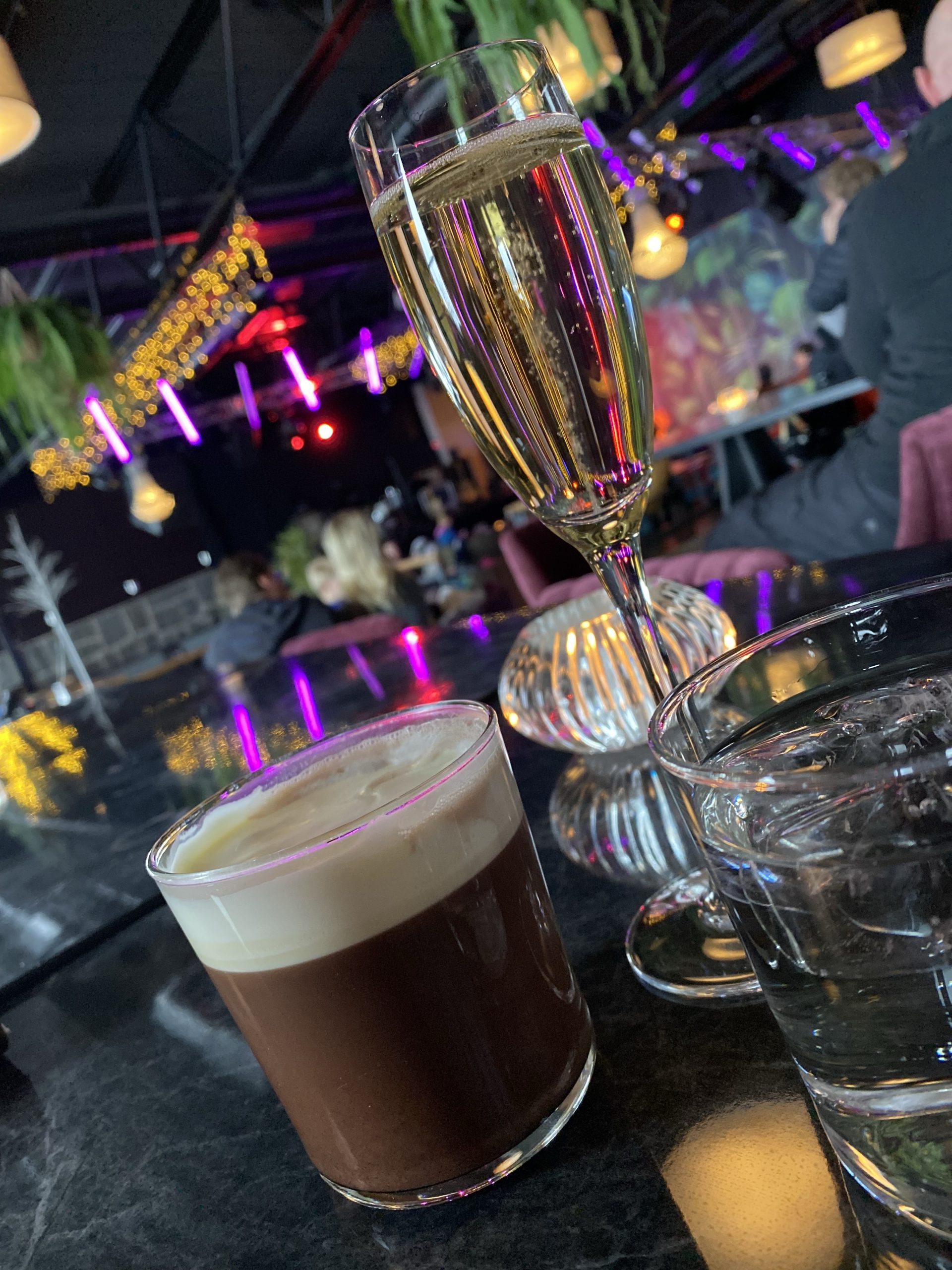 Bubbel, varm choklad med grädde och bubbelvatten. Sen satt jag där själv och tittade. Känner mig alltid konstig när man sitter själv sådär och dricker alkohol. 😂