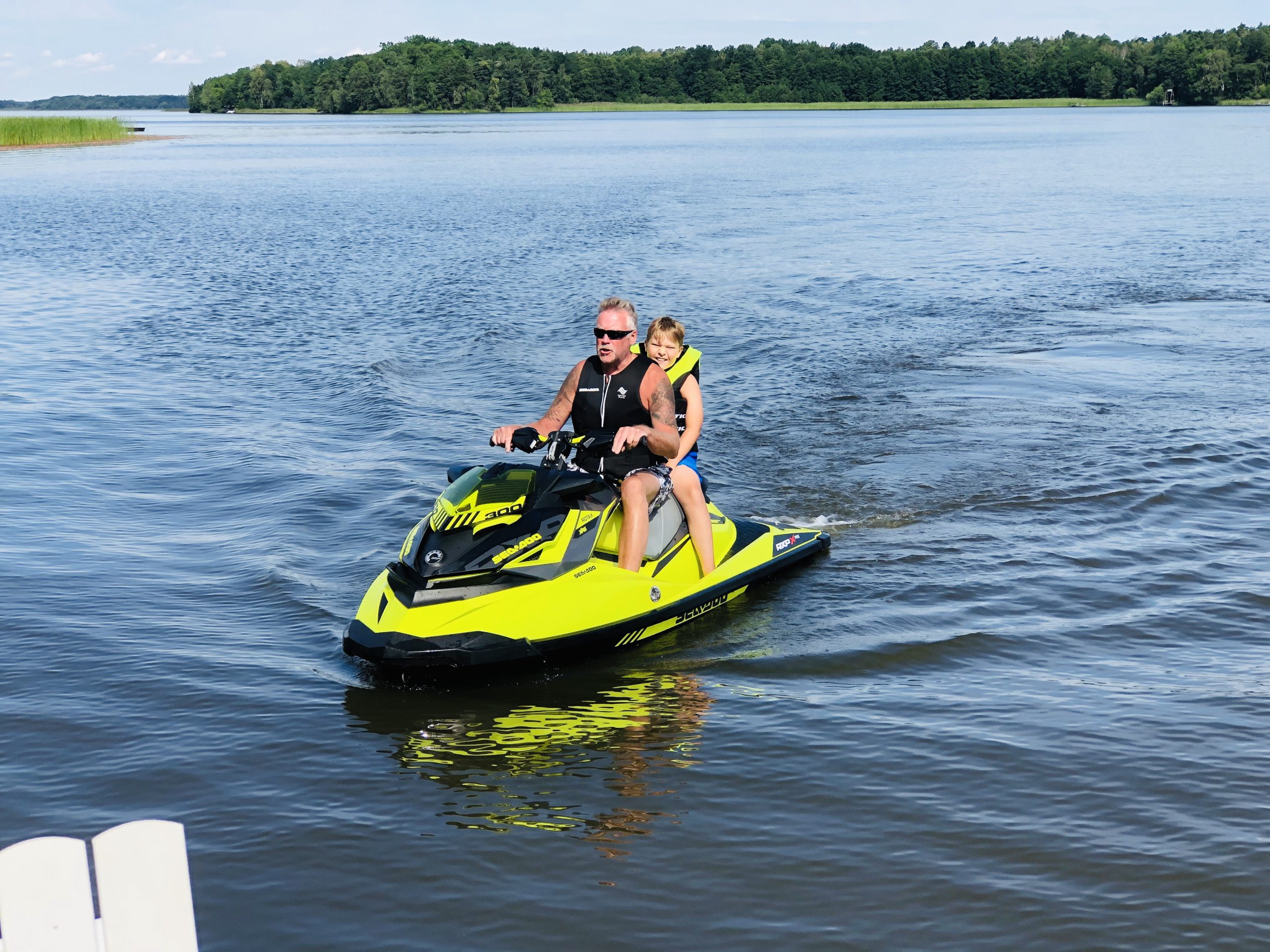 Vår förmiddag igår startade ju som sagt hos våra vänner Carola och Nisse. Ni gissar lyckan när Milo fick sitta bakpå Nisse och åka en lång stund bakpå vattenscootern?