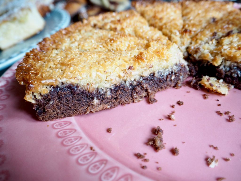 Denna måste du testa att baka, du kommer inte att bli besviken. Smaken är fantastisk med den härliga blandningen av choklad och sån knäckig kolakokos. MUUUUUMS!