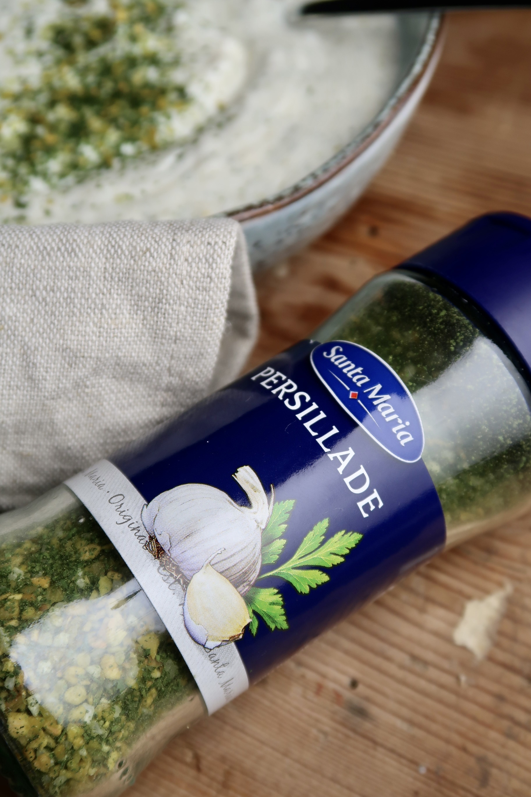 3) Såsen: Riv skalet på citronen, dela citronen sen och pressa ut saften i en skål. Ha i turkisk yoggi, rivna skalet, honung och persillade krydda. Blanda.