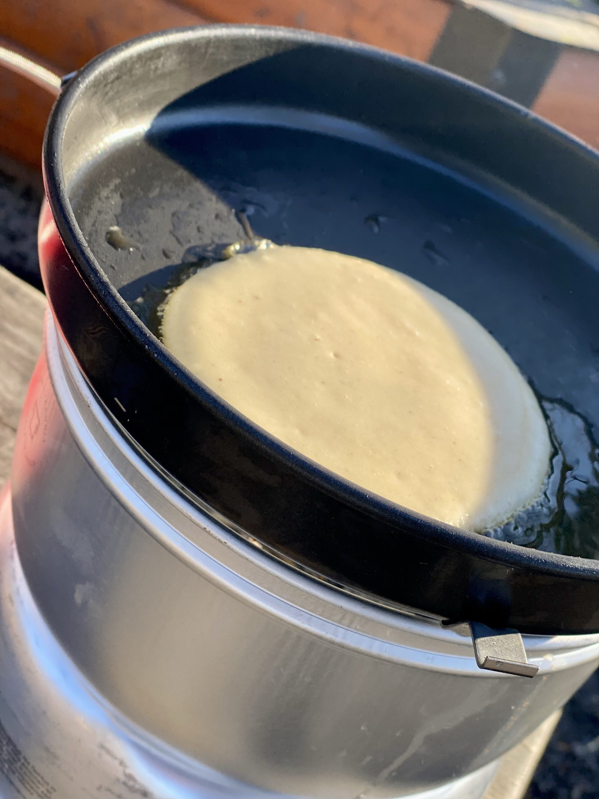 Tog med Nutella som vi bredde på dem med. Fasligt smarrigt, smakade en liten bit. Är ju allergisk mot hasselnötter och äter inte så mycket sånt mer än på lördagar just nu. 😀 Tog med vårt Trangiakök, det är verkligen helt perfekt att laga mat med och faktiskt också göra lite enklare efterrätter med. Älskar det där stormköket alltså.