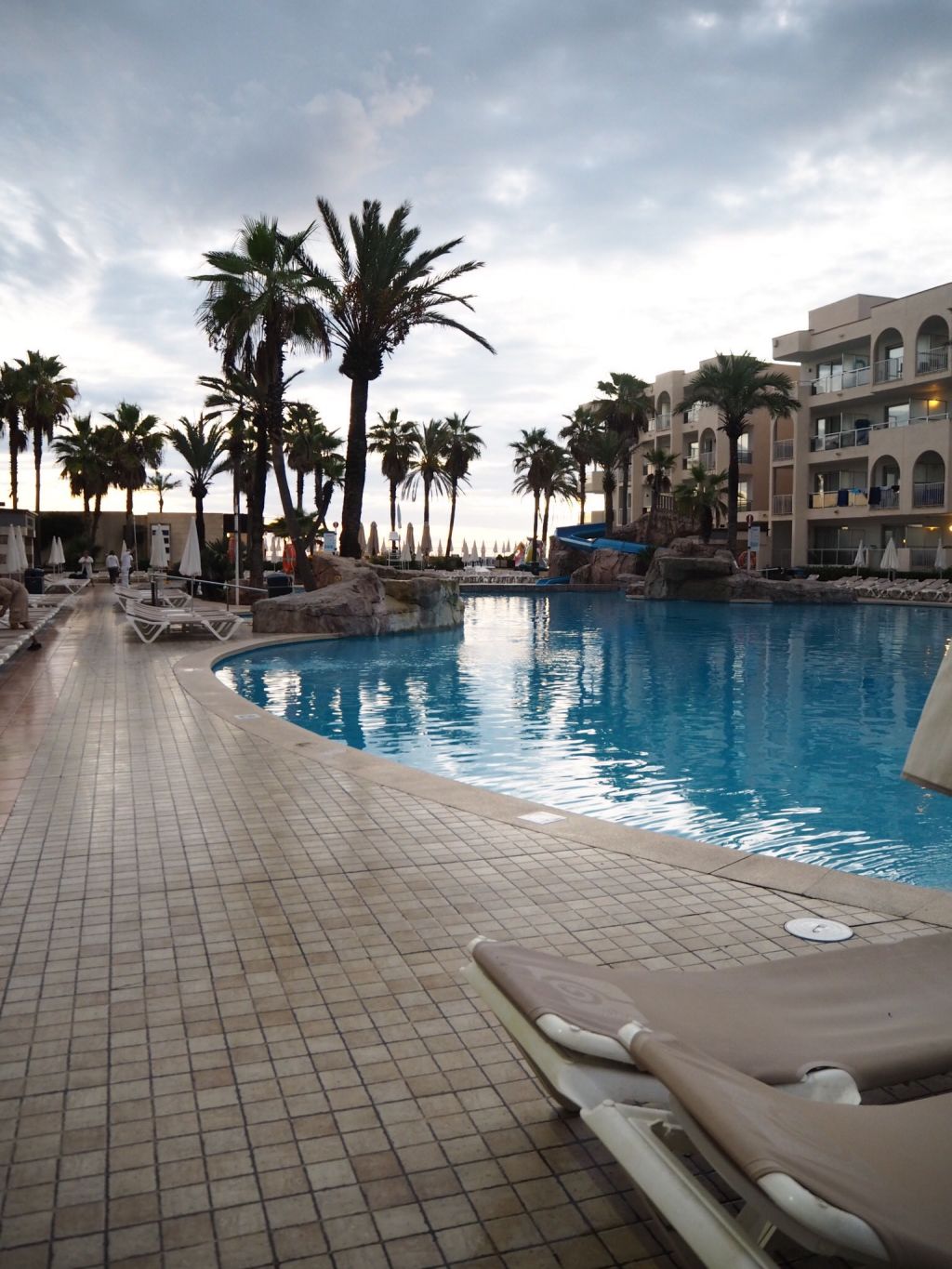 Poolområdet innan det liksom vaknat till liv. Så stort och maffigt, dessutom väldigt fräscht och städat överallt. Är verkligen impad!