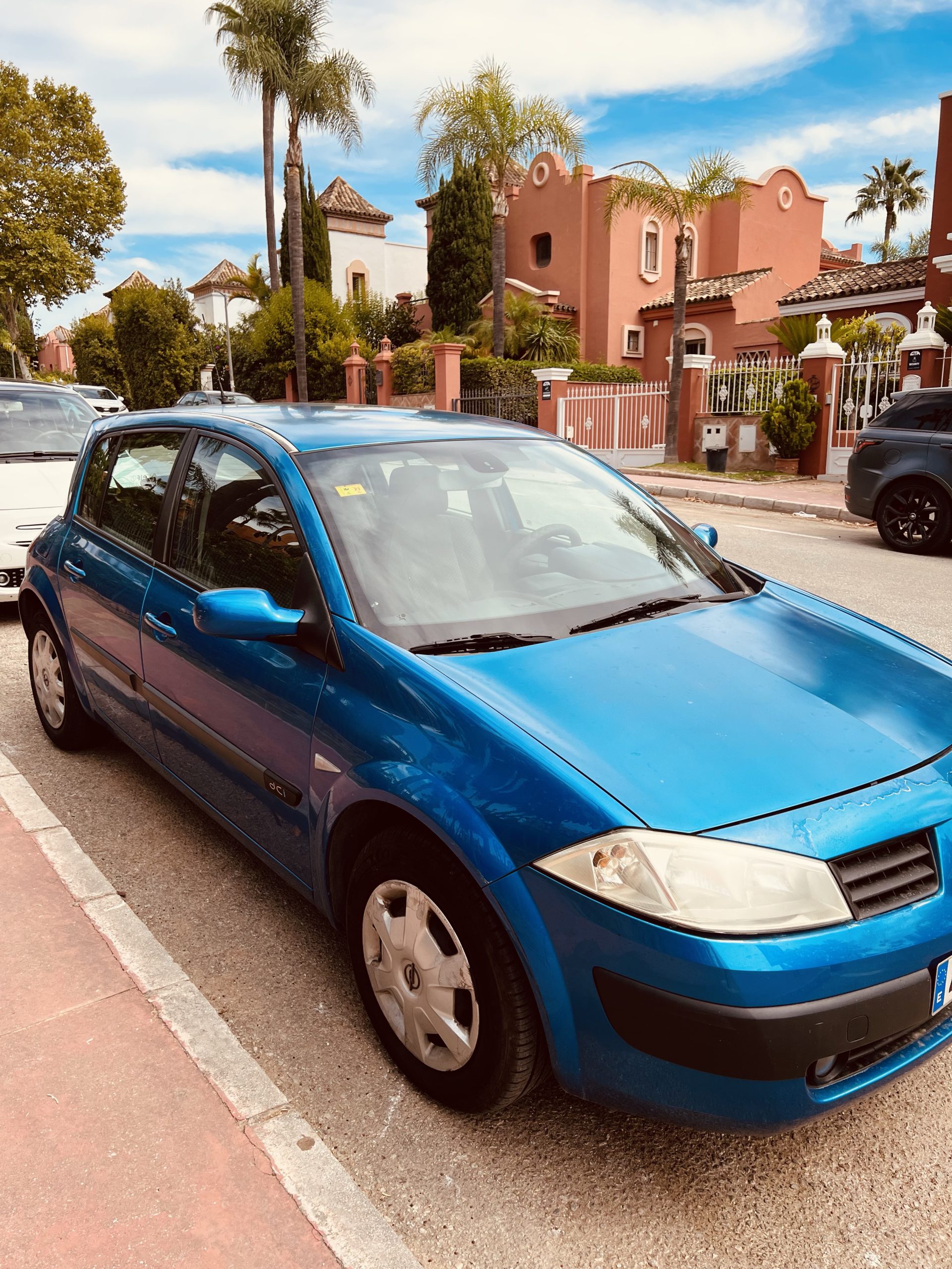 Vi har också hyrt en bil, i Spanien kostar det multum att köpa bil. Mycket dyrare än i Sverige. Så att tänka att vi skulle köpa en här nere var en miss. Dock så har vi nu hyrt en bil ”long term”. Ska du hyra för en dräglig summa per månad får du tänka att bilen inte får vara smashing direkt. Vi har en gammal Renault Megane. Den är full av olika blessyrer och skador men den rullar och AC:n funkar för det mesta. Dock så har vi fått rådet att fortsätta ha en rucklig bil här nere då folk inte direkt kör lugnt och behagligt, men jag tänker dock att man vill ha en säker bil. Så vi får se hur vi gör i framtiden. Den här har vi i alla fall betalat en månad för att ha. Vi kallar henne för ”Blueberry Hixy! 🫐