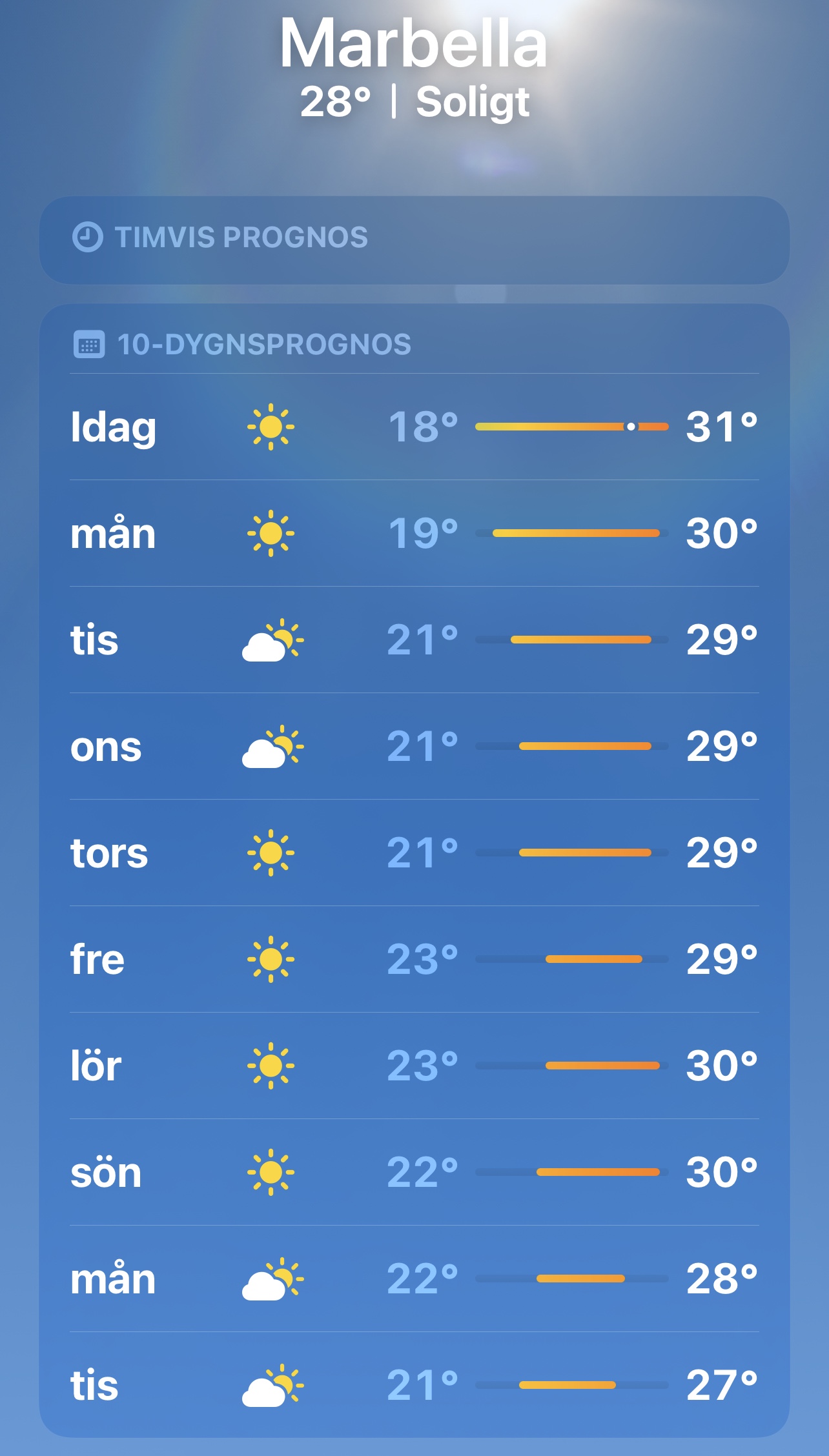 Sommaren verkar i alla fall vara långt ifrån över här i Marbella. Detta är vädret den närmsta veckan. Inte så tokigt om ni frågar mig. 😍