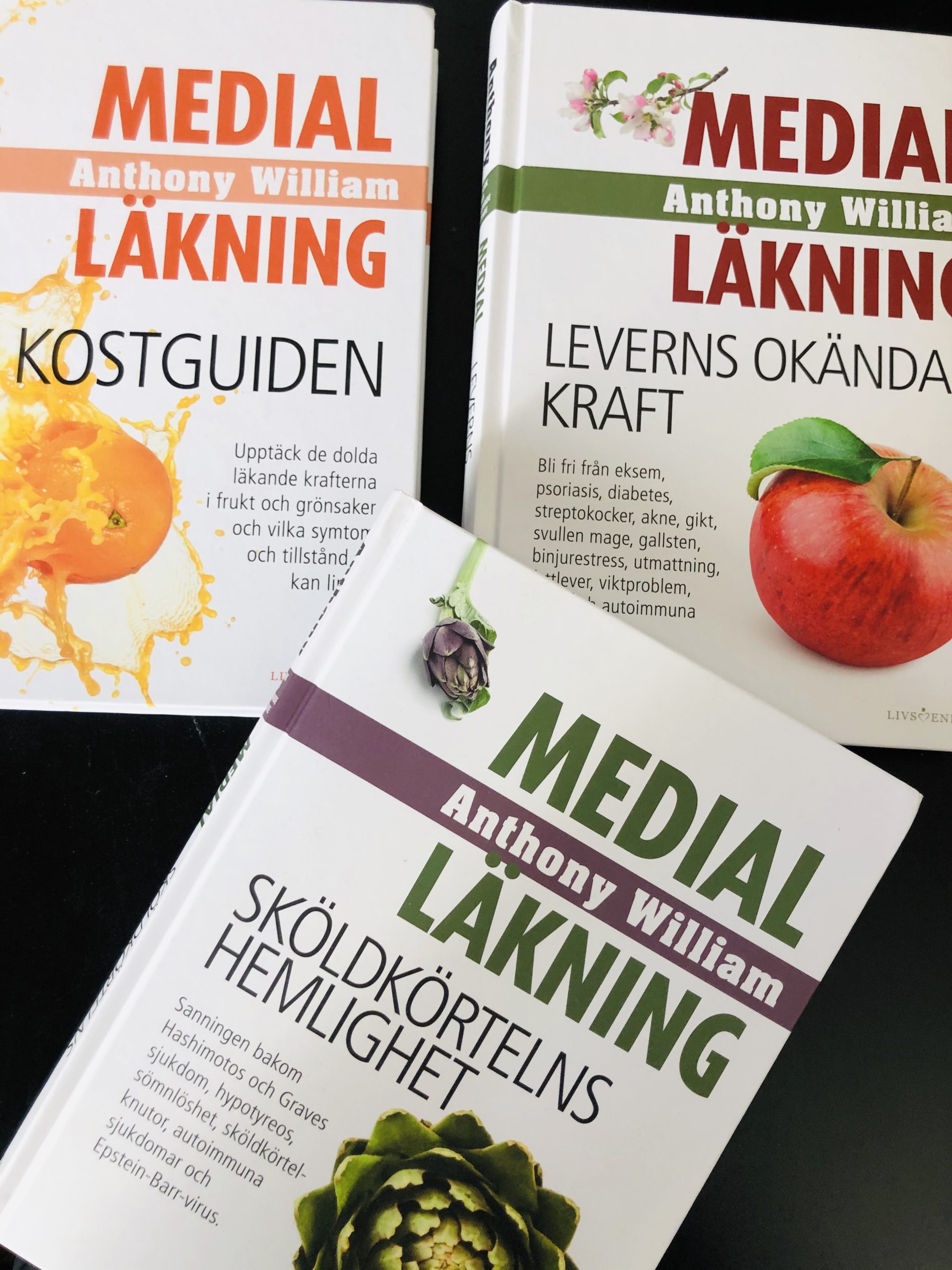 Sen köpte jag också Kostguiden, Leverns okända kraft och Sköldkörtelns hemlighet.