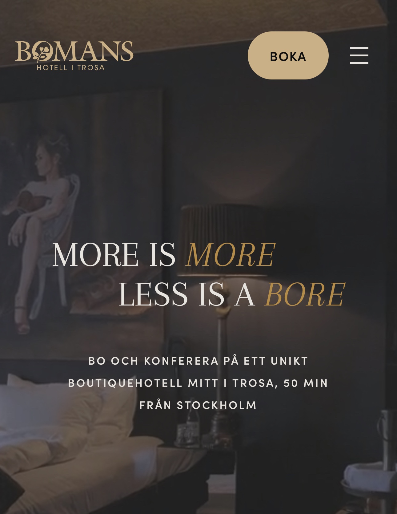 Detta hotell är ”one of a kind”, hon som äger det, Kristin Boman, lämnar liksom inget åt slumpen. Varenda vrå är genomtänkt och det känner man direkt bara man kliver innanför dörrarna. Första gången vi var där kände vi oss som kungligheter, sån otrolig service! Sedan har vi återkommit flera gånger, man kan inte låta bli att hälsa på lite då och då.
