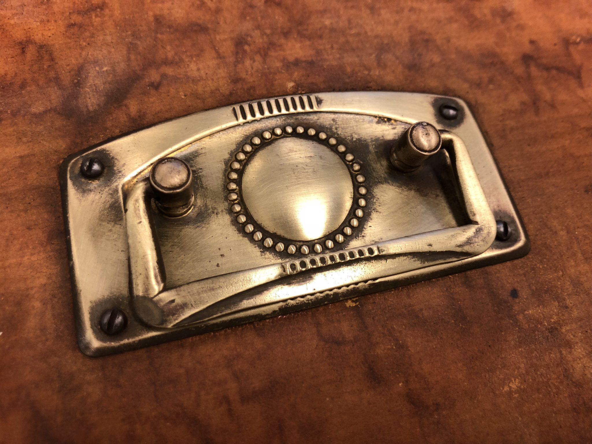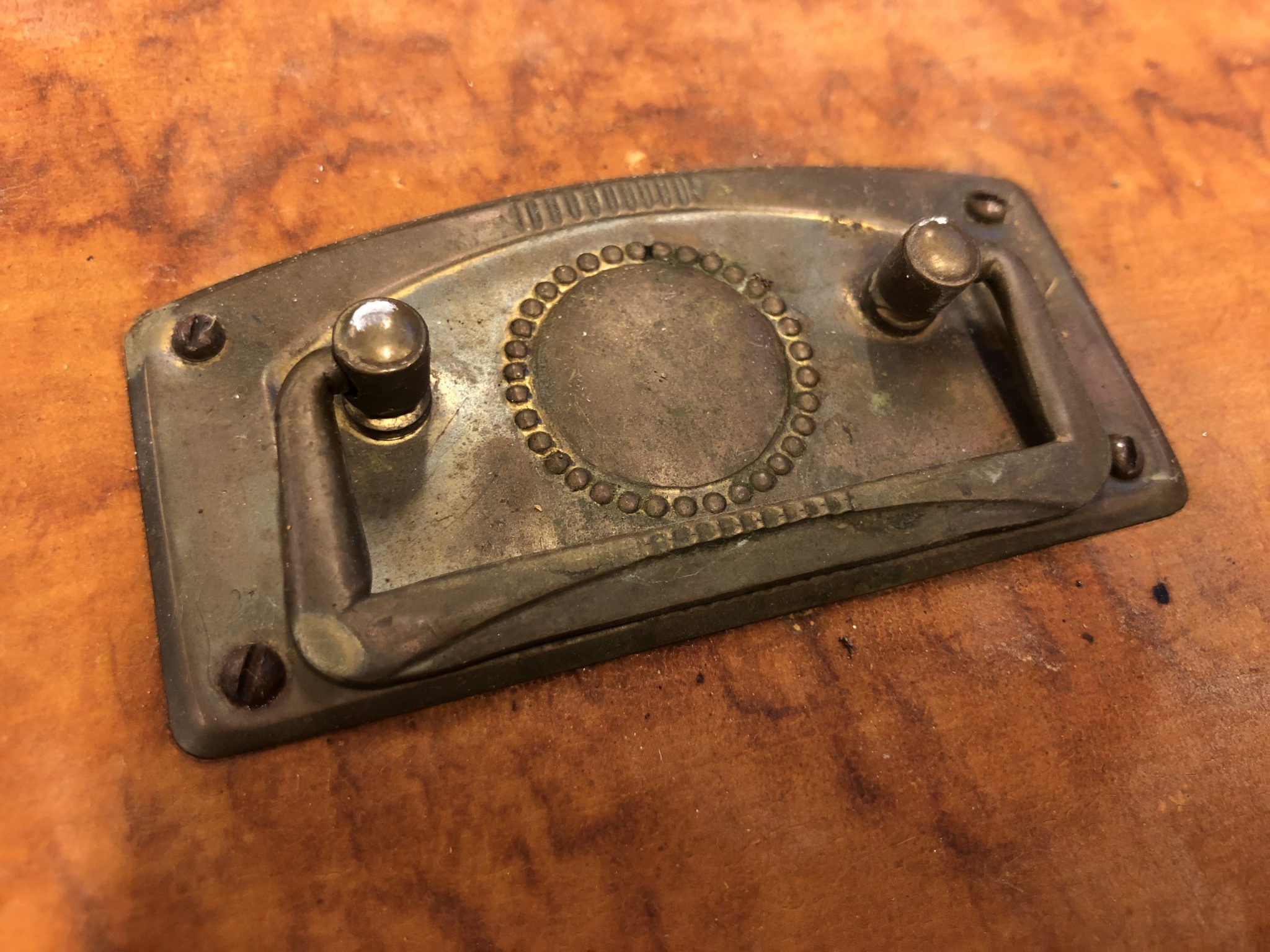 Byrån innan slipning och handpolering av dessa vackra beslag. De var verkligen slitna och smutsiga. Den här byrån är verkligen gediget hantverk. Så fin och robust byrå som jag bara måste göra till något vackert. Så sjukt mycket jobb men oj vad fint det kommer bli tror jag. Att få skapa något nytt av något gammalt och avdankat är så sjukt stimulerande. Ni anar inte. Känns som jag spinner som en liten katt!